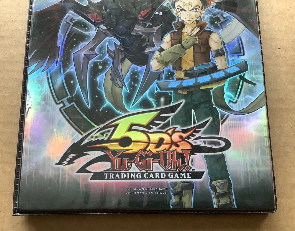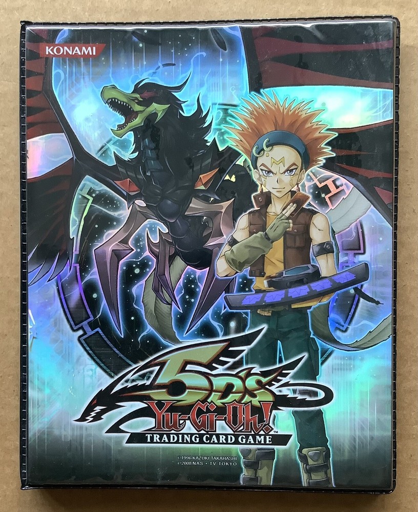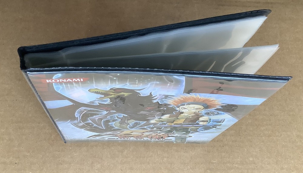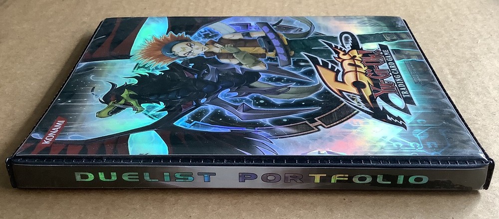 YUGIOH 5D’S DUELIST PORTFOLIO Released in 2008 by Konami. Cover illustration features Crow Hogan. This card binder includes 20 4-pocket pages which allows for holding up to 160 cards. Binder measures 6 3/8” x 8”. Condition is Near Mint or better. Does not appear to have been used. Edges & corners of both front & back covers are in excellent shape (no splitting, no tears). Please see photos. This listing is for the portfolio only. Please note that there are no cards included inside.