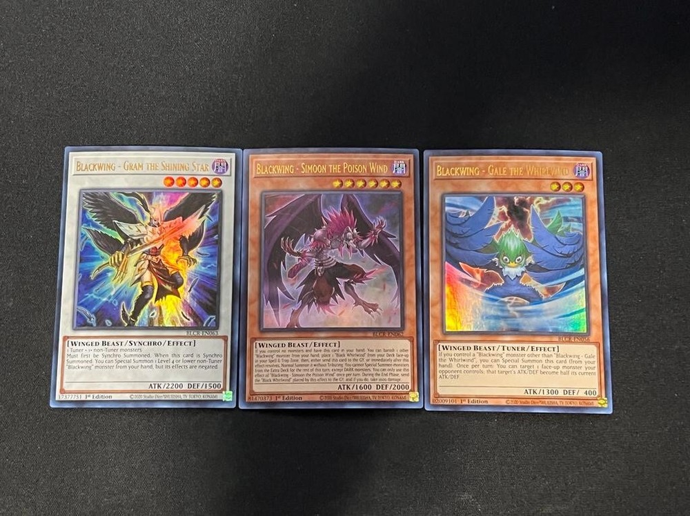 YUGIOH BLACKWING 3X ULTRA RARES. BLACKWING-GRAM THE SHINING STARBLACKWING- SIMOON THE POISON WINDBLACKWING- GALE THE WHIRLWIND