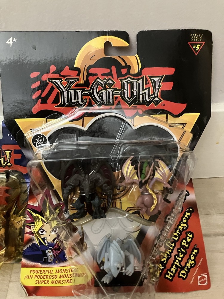 This set of three Yu-Gi-Oh! action figures includes the characters Blue-Eyes Toon Dragon, Black Skull Dragon, and Harpies Pet Dragon from the popular TV show and movie. The figures are vintage, part of Series 5, and come in their original, unopened packaging. Each figure stands at 2 inches tall and is made of plastic. This collectible set appeals to fans of the Yu-Gi-Oh! franchise and is a great addition to any anime and manga merchandise collection.
