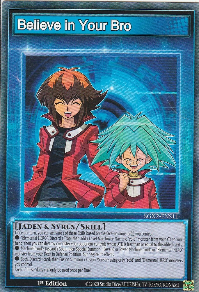 YUGIOH CARD BELIEVE IN YOUR BRO SGX2-ENS11 1ST EDITION COMMUN