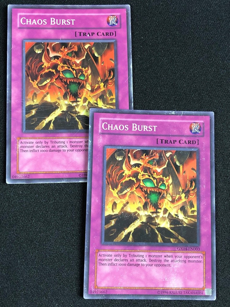YUGIOH CHAOS BURST GX04-EN003 SUPER X2 PLAY/EDGE WEAR ALL CARDS IN THIS AUCTION ARE IN NEAR MINT TO MINT CONDITION UNLESS STATED OTHERWISE IN THE TITLE. AND, YOU ARE GUARANTEED TO RECEIVE THE CARD NAMED IN THE TITLE. PLEASE NOTE, IF THERE'S MORE THAN 1 COPY AVAILABLE, YOU MAY NOT RECIEVE THE SAME EXACT CARD IN THE PHOTO. HOWEVER, IT WILL BE THE SAME EXACT CARD IN THE TITLE, AND DESCRIPTION! PLEASE CONTACT ME IF THERE IS ANYTHING WRONG WITH YOUR ORDER OR SHIPPING BEFORE LEAVING FEEDBACK. PLEASE GIVE ME A CHANCE TO FIX ANY PROBLEM YOU MAY HAVE. THANK YOU! Shipping Information: Shipping and Handling for this auction will be Free inside the United States - With Tracking! International Shipping Available Through Ebay’s Global Shipping Program. (BUYER IS RESPONSIBLE FOR ANY TAX) **Read the TITLE to see the condition of the cards Before you place a bid. Any damaged cards will be listed as such In The Title (FOR EXAMPLE: Blue Eyes White Dragon LOB-001 - Play/Edgewear). If it doesn't say anything about damage, it is in near-mint to mint condition. If you have any questions, message me Before you place your bid.** RETURN POLICY: RETURNS ARE ACCEPTED IF THE ITEM ARRIVES DAMAGED, OR NOT AS DESCRIBED. RETURNS ARE NOT ACCEPTED FOR BUYERS REMORSE. CHECK OUT MY OTHER AUCTIONS! _gsrx_vers_1536 (GS 9.4 (1536))