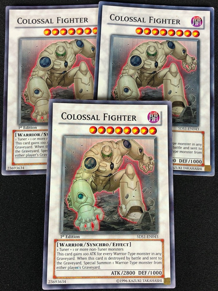 YUGIOH COLOSSAL FIGHTER 5DS1-EN043 1ST SUPER X3 (LP) ALL CARDS IN THIS AUCTION ARE IN NEAR MINT TO MINT CONDITION UNLESS STATED OTHERWISE IN THE TITLE. AND, YOU ARE GUARANTEED TO RECEIVE THE CARD NAMED IN THE TITLE. PLEASE NOTE, IF THERE'S MORE THAN 1 COPY AVAILABLE, YOU MAY NOT RECIEVE THE SAME EXACT CARD IN THE PHOTO. HOWEVER, IT WILL BE THE SAME EXACT CARD IN THE TITLE, AND DESCRIPTION! PLEASE CONTACT ME IF THERE IS ANYTHING WRONG WITH YOUR ORDER OR SHIPPING BEFORE LEAVING FEEDBACK. PLEASE GIVE ME A CHANCE TO FIX ANY PROBLEM YOU MAY HAVE. THANK YOU! Shipping Information: Shipping and Handling for this auction will be Free inside the United States - With Tracking! International Shipping Available Through Ebay’s Global Shipping Program. (BUYER IS RESPONSIBLE FOR ANY TAX) **Read the TITLE to see the condition of the cards Before you place a bid. Any damaged cards will be listed as such In The Title (FOR EXAMPLE: Blue Eyes White Dragon LOB-001 (HP) If it doesn't say anything about damage, it is in near-mint to mint condition. If you have any questions, message me Before you place your bid.** *PLEASE READ* Ebay's Card Condition Guidelines: (NM) = Near mint or better Comparable to a fresh pack Flaws may include Minor corner and edge wear (LP) = Lightly played (Excellent) Has clearly visible signs of wear Flaws may include Moderate edge chipping Moderate surface scuffing Fuzzy corners (MP) = Moderately played (Very good) Has moderate-to-heavy damage all over Flaws may include Moderate discoloration Moderate creasing Moderate to heavy edge chipping Rounding and soft corner (HP) = Heavily played (Poor) Is extremely worn and displays flaws all over Heavily Played condition cards exhibit signs of heavy wear. Heavily Played condition cards may include cards that have significant creasing, folding, severe water damage, heavy whitening, heavy border wear, and/or tearing. RETURN POLICY: RETURNS ARE ACCEPTED IF THE ITEM ARRIVES DAMAGED, OR NOT AS DESCRIBED. RETURNS ARE NOT ACCEPTED FOR BUYERS REMORSE. CHECK OUT MY OTHER AUCTIONS! _gsrx_vers_1680 (GS 9.8.3 (1680))