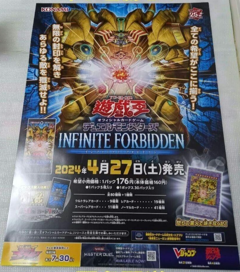 YU-GI-OH! Card Game " INFINITE FORBIDDEN " Poster Display Yugioh JAPAN Description Grade: Very good Appearance of the item Some Scratch as photos. Some the sign of use as photos. Please check on the photos for detailed condition of the product. If you have any question or concern, please do not hesitate to contact me. Thank you for visiting. Please Note for International Buyers We ship items from Japan. Import duties, taxes (example VAT, GST), and charges are not included in the item price or shipping cost. These charges are the buyer's responsibility. Please check in advance about those additional costs in your customs office before buying. Generally, those additional costs will be charged by the carrier when you receive the item. We write the customs declaration correctly. No undervalue. No checkmark gift. Click here and go to my listings!