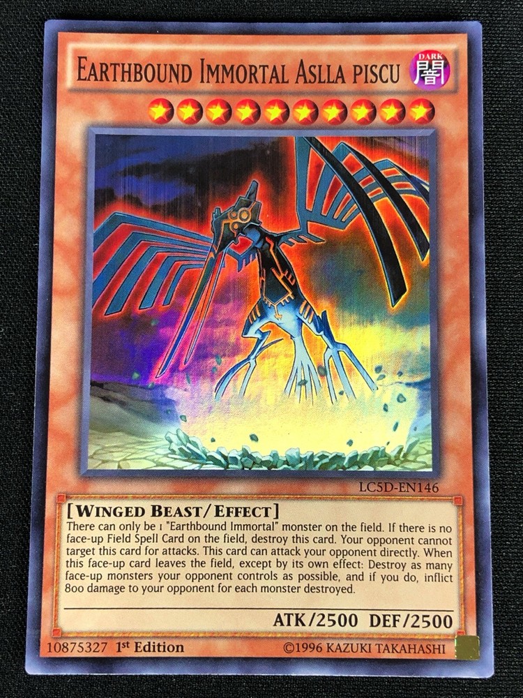 YUGIOH EARTHBOUND IMMORTAL ASLLA PISCU LC5D-EN146 1ST SUPER (NM) ALL CARDS IN THIS AUCTION ARE IN NEAR MINT TO MINT CONDITION UNLESS STATED OTHERWISE IN THE TITLE. AND, YOU ARE GUARANTEED TO RECEIVE THE CARD NAMED IN THE TITLE. PLEASE NOTE, IF THERE'S MORE THAN 1 COPY AVAILABLE, YOU MAY NOT RECIEVE THE SAME EXACT CARD IN THE PHOTO. HOWEVER, IT WILL BE THE SAME EXACT CARD IN THE TITLE, AND DESCRIPTION! PLEASE CONTACT ME IF THERE IS ANYTHING WRONG WITH YOUR ORDER OR SHIPPING BEFORE LEAVING FEEDBACK. PLEASE GIVE ME A CHANCE TO FIX ANY PROBLEM YOU MAY HAVE. THANK YOU! Shipping Information: Shipping and Handling for this auction will be Free inside the United States - With Tracking! International Shipping Available Through Ebay’s Global Shipping Program. (BUYER IS RESPONSIBLE FOR ANY TAX) **Read the TITLE to see the condition of the cards Before you place a bid. Any damaged cards will be listed as such In The Title (FOR EXAMPLE: Blue Eyes White Dragon LOB-001 (HP) If it doesn't say anything about damage, it is in near-mint to mint condition. If you have any questions, message me Before you place your bid.** *PLEASE READ* Ebay's Card Condition Guidelines: (NM) = Near mint or better Comparable to a fresh pack Flaws may include Minor corner and edge wear (LP) = Lightly played (Excellent) Has clearly visible signs of wear Flaws may include Moderate edge chipping Moderate surface scuffing Fuzzy corners (MP) = Moderately played (Very good) Has moderate-to-heavy damage all over Flaws may include Moderate discoloration Moderate creasing Moderate to heavy edge chipping Rounding and soft corner (HP) = Heavily played (Poor) Is extremely worn and displays flaws all over Heavily Played condition cards exhibit signs of heavy wear. Heavily Played condition cards may include cards that have significant creasing, folding, severe water damage, heavy whitening, heavy border wear, and/or tearing. RETURN POLICY: RETURNS ARE ACCEPTED IF THE ITEM ARRIVES DAMAGED, OR NOT AS DESCRIBED. RETURNS ARE NOT ACCEPTED FOR BUYERS REMORSE. CHECK OUT MY OTHER AUCTIONS! _gsrx_vers_1680 (GS 9.8.3 (1680))