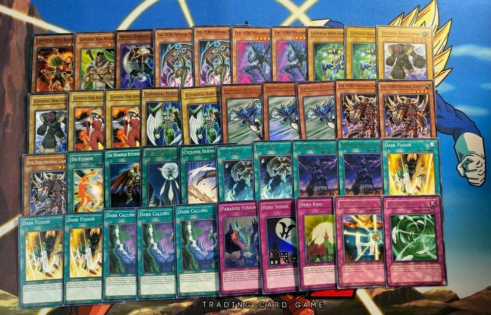 Hey guys I am new to Ebay so give me feedback or ask questions if your unsure about something. Happy Bidding!!! **Picture may have been edited due to Inventory Changes Please read description Below.** Shipping - All orders will be shipped with bubble mailer and a protective case. - I ship to both Domestic (U.S.) and International destinations! Payment - Please pay within 3 days of your order to avoid an Unpaid Item Case. This just helps me run things smoothly for other bidders/buyers and myself. Will appreciate if you please leave feedback when you receive your item, and I will leave feedback as well. Contact me if anything is wrong with your order so I can have a chance to fix the issue- Your satisfaction is most important! Please Allow up to 5-10 Business days before the item will be shipped as I am in grad school and work full time. **If you are a international buyer, Customs Fees are the responsobility of the Buyer** A bonus for ordering you will also Get a Free Holo Card from my collection. It maybe Super Rare, Ultra Rare, or SECRET Rare!!! As a Bonus Gift for buying my auction you will Recieve a Bonus Free Holo Card. It can be Super Rare, Ultra Rare, or Secret Rare or even GHOST Rare!!! You will receive the following items: Monsters: 1| Elemental Hero Blazeman 1| Elemental Hero Wildheart 1| Necro Gardna 2| Evil Hero Infernal Prodigy 2| Evil Hero Malicious Edge 2| Elemental Hero Sparkman 2| Elemental Hero Clayman 2| Elemental Hero Avian 2| Elemental Hero Burstinatrix 3| Elemental Hero Stratos 3| Evil Hero Infernal Gainer Spells: 1| De-Fusion 1| The Warrior Returning Alive 1| Feather Shot 1| Cyclone Boomerang 2| Evil Mind 2| Supreme King's Castle 3| Dark Fusion 3| Dark Calling Traps: 1| Paradox Fusion 1| Hero Signal 1| Hero Ring 1| Hero Medal 1| Feather Wind Extra Deck: 1| Evil Hero Infernal Sniper 1| Evil Hero Inferno Wing 1| Evil Hero Wild Cyclone 1| Evil Hero Dark Gaia 3| Evil Hero Malicious Fiend