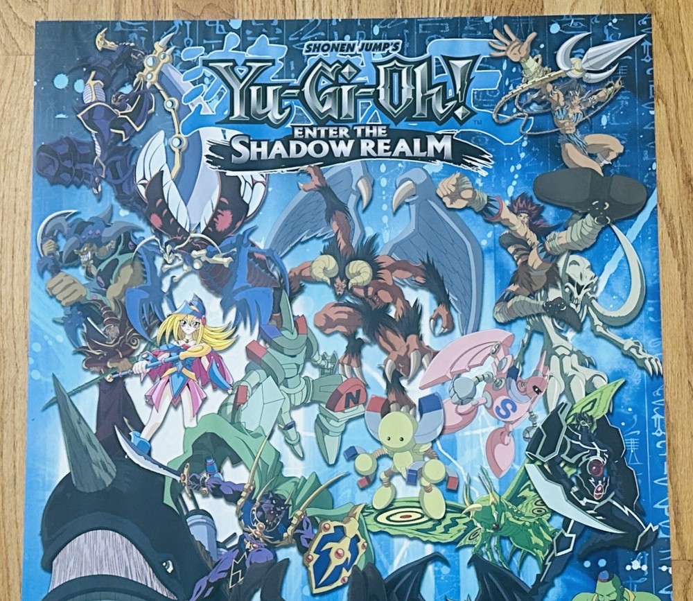 This is a RARE & VINTAGE YU-GI-OH ENTER THE SHADOW REALM POSTER , made in 1996 by Trends. The dimensions are 22x34". It is in Excellent condition. Comes from a smoke-free home. This poster will be shipped rolled and protected well in a strong poster tube. Will combine shipping, which is always FREE! Visit the Prime Time Treasure Ebay Store for more posters, comic books, and amazing treasures, updated daily!