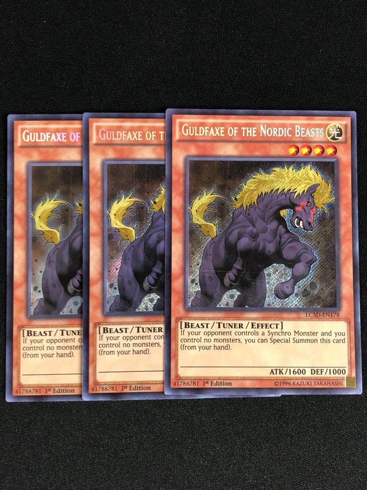 YUGIOH GULDFAXE OF THE NORDIC BEASTS LC5D-EN178 1ST SECRET X3 ALL CARDS IN THIS AUCTION ARE IN NEAR MINT TO MINT CONDITION UNLESS STATED OTHERWISE IN THE TITLE. AND, YOU ARE GUARANTEED TO RECEIVE THE CARD NAMED IN THE TITLE. PLEASE NOTE, IF THERE'S MORE THAN 1 COPY AVAILABLE, YOU MAY NOT RECIEVE THE SAME EXACT CARD IN THE PHOTO. HOWEVER, IT WILL BE THE SAME EXACT CARD IN THE TITLE, AND DESCRIPTION! PLEASE CONTACT ME IF THERE IS ANYTHING WRONG WITH YOUR ORDER OR SHIPPING BEFORE LEAVING FEEDBACK. PLEASE GIVE ME A CHANCE TO FIX ANY PROBLEM YOU MAY HAVE. THANK YOU! Shipping Information: Shipping and Handling for this auction will be Free inside the United States - With Tracking! International Shipping Available Through Ebay’s Global Shipping Program. (BUYER IS RESPONSIBLE FOR ANY TAX) **Read the TITLE to see the condition of the cards Before you place a bid. Any damaged cards will be listed as such In The Title (FOR EXAMPLE: Blue Eyes White Dragon LOB-001 - Play/Edgewear). If it doesn't say anything about damage, it is in near-mint to mint condition. If you have any questions, message me Before you place your bid.** RETURN POLICY: RETURNS ARE ACCEPTED IF THE ITEM ARRIVES DAMAGED, OR NOT AS DESCRIBED. RETURNS ARE NOT ACCEPTED FOR BUYERS REMORSE. CHECK OUT MY OTHER AUCTIONS! _gsrx_vers_1516 (GS 9.3 (1516))