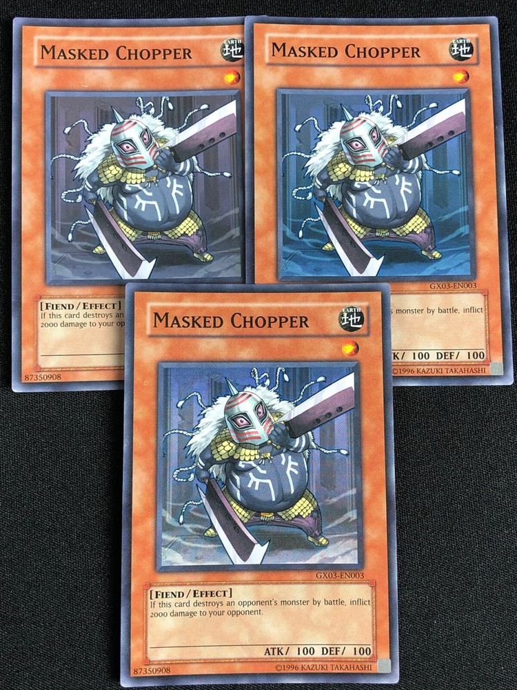 YUGIOH MASKED CHOPPER GX03-EN003 SUPER X3 NM ALL CARDS IN THIS AUCTION ARE IN NEAR MINT TO MINT CONDITION UNLESS STATED OTHERWISE IN THE TITLE. AND, YOU ARE GUARANTEED TO RECEIVE THE CARD NAMED IN THE TITLE. PLEASE NOTE, IF THERE'S MORE THAN 1 COPY AVAILABLE, YOU MAY NOT RECIEVE THE SAME EXACT CARD IN THE PHOTO. HOWEVER, IT WILL BE THE SAME EXACT CARD IN THE TITLE, AND DESCRIPTION! PLEASE CONTACT ME IF THERE IS ANYTHING WRONG WITH YOUR ORDER OR SHIPPING BEFORE LEAVING FEEDBACK. PLEASE GIVE ME A CHANCE TO FIX ANY PROBLEM YOU MAY HAVE. THANK YOU! Shipping Information: Shipping and Handling for this auction will be Free inside the United States - With Tracking! International Shipping Available Through Ebay’s Global Shipping Program. (BUYER IS RESPONSIBLE FOR ANY TAX) **Read the TITLE to see the condition of the cards Before you place a bid. Any damaged cards will be listed as such In The Title (FOR EXAMPLE: Blue Eyes White Dragon LOB-001 - Play/Edgewear). If it doesn't say anything about damage, it is in near-mint to mint condition. If you have any questions, message me Before you place your bid.** RETURN POLICY: RETURNS ARE ACCEPTED IF THE ITEM ARRIVES DAMAGED, OR NOT AS DESCRIBED. RETURNS ARE NOT ACCEPTED FOR BUYERS REMORSE. CHECK OUT MY OTHER AUCTIONS! _gsrx_vers_1536 (GS 9.4 (1536))
