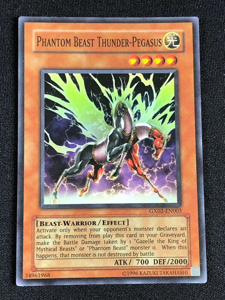 YUGIOH PHANTOM BEAST THUNDER PEGASUS GX02-EN003 SUPER NM ALL CARDS IN THIS AUCTION ARE IN NEAR MINT TO MINT CONDITION UNLESS STATED OTHERWISE IN THE TITLE. AND, YOU ARE GUARANTEED TO RECEIVE THE CARD NAMED IN THE TITLE. PLEASE NOTE, IF THERE'S MORE THAN 1 COPY AVAILABLE, YOU MAY NOT RECIEVE THE SAME EXACT CARD IN THE PHOTO. HOWEVER, IT WILL BE THE SAME EXACT CARD IN THE TITLE, AND DESCRIPTION! PLEASE CONTACT ME IF THERE IS ANYTHING WRONG WITH YOUR ORDER OR SHIPPING BEFORE LEAVING FEEDBACK. PLEASE GIVE ME A CHANCE TO FIX ANY PROBLEM YOU MAY HAVE. THANK YOU! Shipping Information: Shipping and Handling for this auction will be Free inside the United States - With Tracking! International Shipping Available Through Ebay’s Global Shipping Program. (BUYER IS RESPONSIBLE FOR ANY TAX) **Read the TITLE to see the condition of the cards Before you place a bid. Any damaged cards will be listed as such In The Title (FOR EXAMPLE: Blue Eyes White Dragon LOB-001 - Play/Edgewear). If it doesn't say anything about damage, it is in near-mint to mint condition. If you have any questions, message me Before you place your bid.** RETURN POLICY: RETURNS ARE ACCEPTED IF THE ITEM ARRIVES DAMAGED, OR NOT AS DESCRIBED. RETURNS ARE NOT ACCEPTED FOR BUYERS REMORSE. CHECK OUT MY OTHER AUCTIONS! _gsrx_vers_1536 (GS 9.4 (1536))