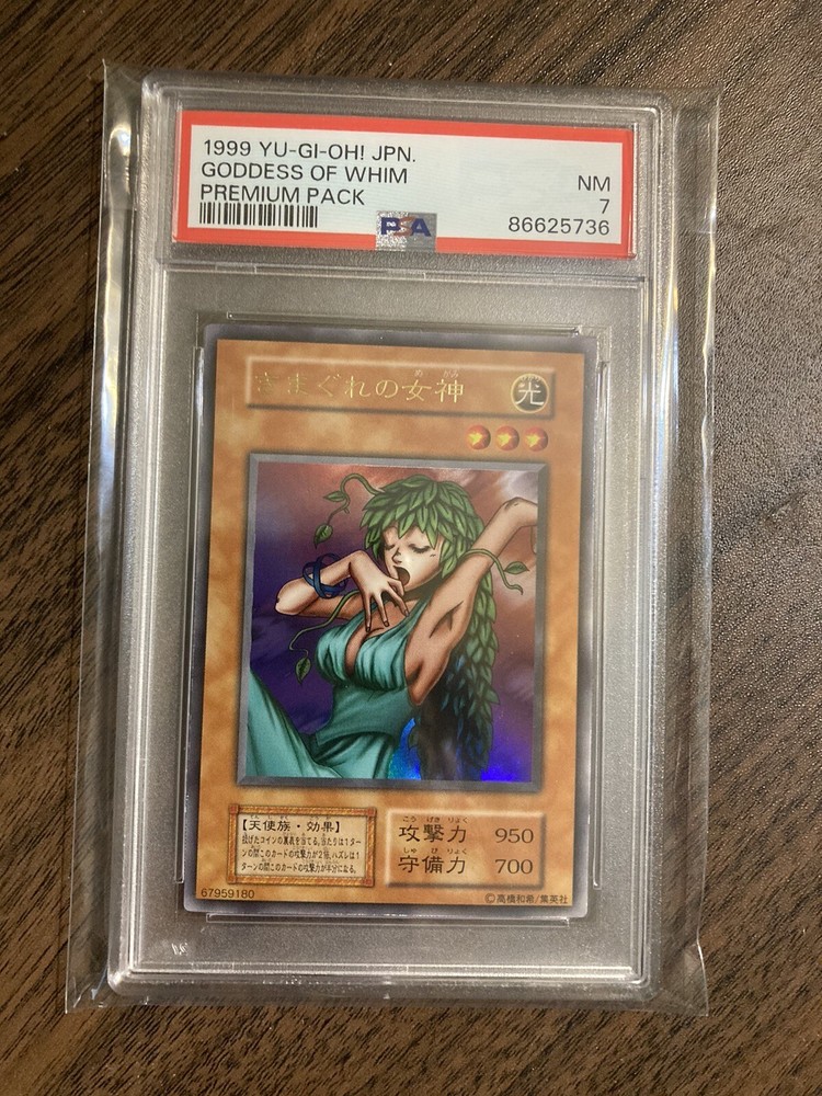 YUGIOH! PSA 7 1999 Premium Pack Goddess of Whim. Condition is Graded. Shipped with USPS Ground Advantage.