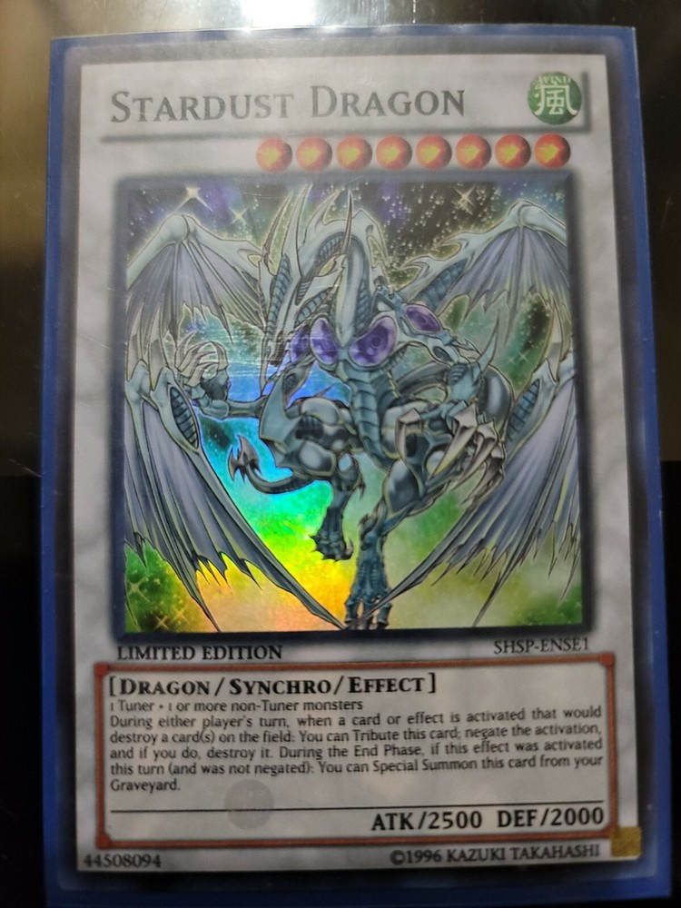 This Stardust Dragon card is amazing! The super rare limited edition artwork looks stunning, and even though it's used, the condition is still great. Shipping was fast with USPS, and it arrived safely. A must-have for any Yu-Gi-Oh! collector or duelist—definitely worth adding to your deck!