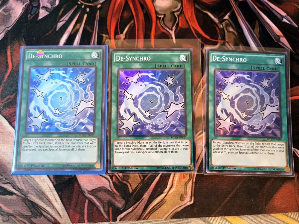 YUGIOH TCG 3X DE SYNCHRO LC5D-EN136 SUPER 1ST EDITION NEAR MINT YOU GET WHATS SHOWN IN THE PICTURE AND DESCRIPTION ALL CARDS ARE SHIP WITH PROECTIONS. ALL CARDS THAT IS BELOW 20$ WELL BE SHIP IN PWE WITH EBAY TRACKING. 24$-21$ CARDS WELL BE WITH STAMPS. CARDS ABOVE 25$ WELL BE SHIP IN BUBBLE MAIL WITH FIRST CLASS SHIPPING TRACKING. IF YOUR ORDERS ADDS UP TO 25$ OR ABOVE IT WOULD BE ALSO IN A BUBBLE MAILER. PUERTO RICO WELL BE SENT BY STAMPS ONLY. MOST OF MY CARDS ARE PULL OUT OF BOOSTER AND PUT INTO SLEEVES. THANK YOU FOR BUYING.