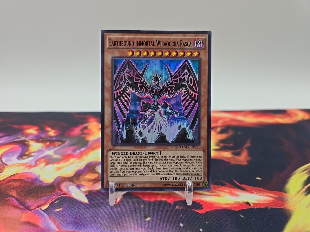 This ultra rare YUGIOH TCG card, Earthbound Immortal Wiraqocha Rasca, is a powerful monster with a 100 attack power and 100 defense/toughness. It is made of high-quality card stock material with a holo finish, and features the unique attribute of Dark. This card is perfect for collectors and players alike, and is sure to enhance any Yu-Gi-Oh! TCG game. The Japanese card size and English language make it accessible to a wide audience, and it is a 1st edition card manufactured by Konami in the United States. Despite its age level of 6+, this card is not vintage and is still in excellent condition. Don't miss out on the opportunity to add this rare and valuable card to your collection!