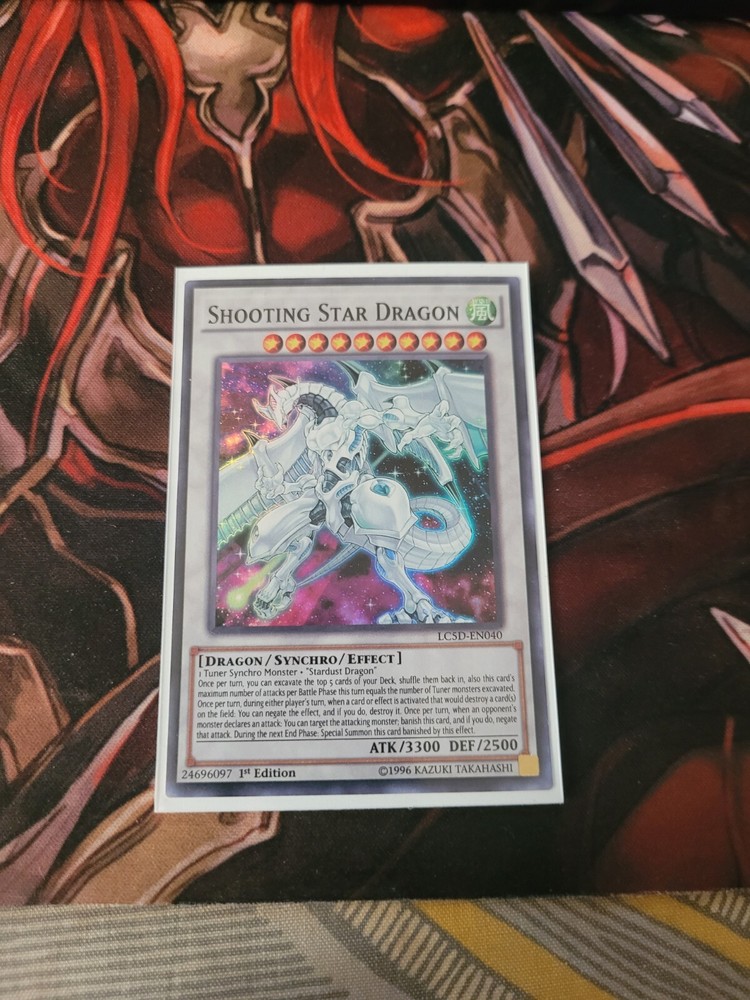 YUGIOH TCG SHOOTING STAR DRAGON LC5D-EN040 SUPER 1ST EDITION NEAR MINT YOU GET WHATS SHOWN IN THE PICTURE AND DESCRIPTION ALL CARDS ARE SHIP WITH PROECTIONS. ALL CARDS THAT IS BELOW 20$ WELL BE SHIP IN PWE WITH EBAY TRACKING. 24$-21$ CARDS WELL BE WITH STAMPS PWE. CARDS ABOVE 25$ WELL BE SHIP IN BUBBLE MAIL WITH USPS GROUND SHIPPING TRACKING. IF YOUR ORDERS ADDS UP TO 25$ OR ABOVE IT WOULD BE ALSO IN A BUBBLE MAILER. IF YOU ARE FROM PUERTO RICO AND ARE BUYING MAKE SURE YOU HAVE "COUNTRY LIST AS UNITED STATES NOT PRI" OR ELSE I CAN'T PRINT EBAYSHIPPING LABEL WITH TRACKING AND WELL SENT ITEM BY STAMPS TO YOU. THANKS. To international buyers since I have been having many buyers that are using Fright Forward Services. YOU ARE BUYING AT YOUR OWN RISK. As I list in my description, I ship using PWE (Plain White Envelope) for cards that does not reach $25 and above. I do not know how the Fright Services pack it after mailing it to them. All I know is that many of the PWE does not make it to its original destination (your real home address) either it's the Fright Services fault for not packing it in bubble mailer or Usps for losing it in transit. If it is being send by PWE by the Fright Services, it made take months before getting there. Also, in case if its lost or does not make it to its destination you must direct your attention to the Fright Services before contacting me. It is not my responsibly for lost mail(item) due to 3rd party delivery. To make sure you get your cards to you faster and more accuracy you have to order cards combining to $25 or above that way I can use Ground Advantage and send it in bubble mailer most of the bubble mailer I use will make it to its destination. Thank you. IF YOU CAN LEAVE FEEDBACKS THAT WOULD BE MUCH APPRECIATE THANK YOU FOR BUYING.
