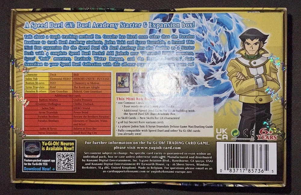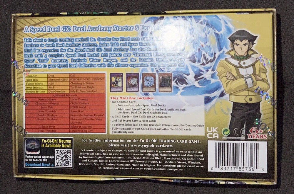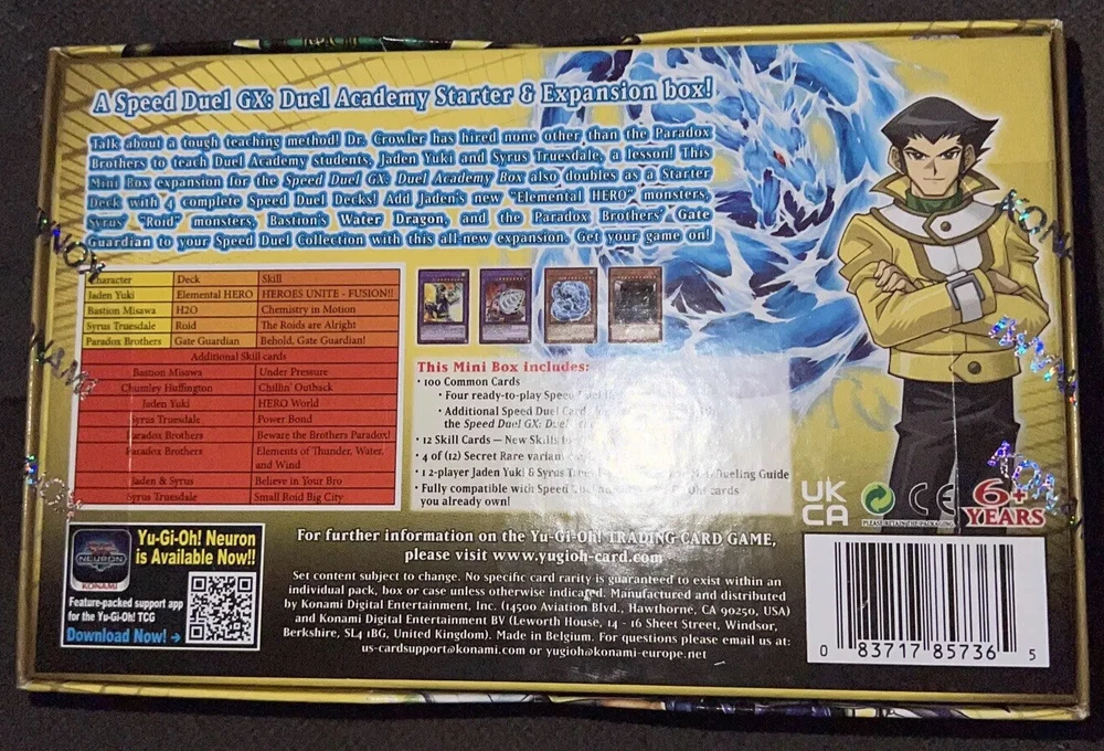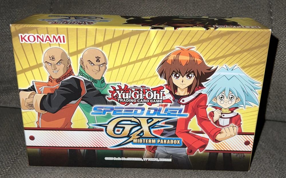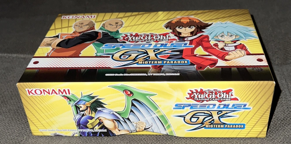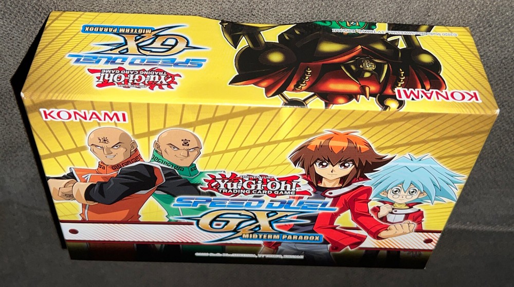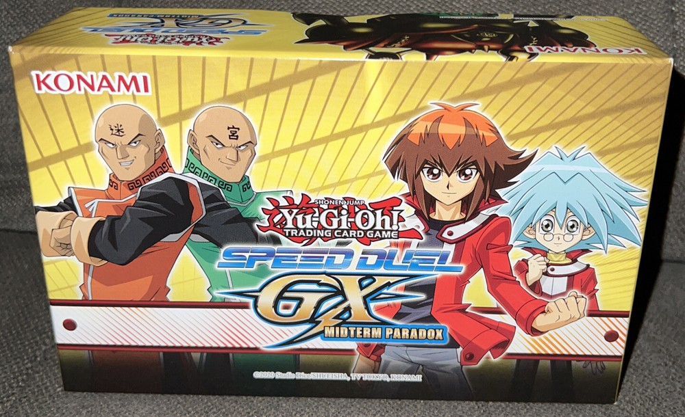 YU-GI-OH! Speed Duel GX Midterm Paradox Box - 6. In the Yu-Gi-Oh! GX animated series, Dr. Crowler hired the Paradox Brothers to teach Jaden Yuki and Syrus Truesdale a lesson! Now you can step into the shoes of the Slifer Red students – or their opponents – in Speed Duel GX: Midterm ParadoxMini Box! Speed Duel GX: Midterm Paradox Mini Boxexpands on the Speed Duel GX: Duel Academy Boxintroducing even more cards from the Yu-Gi-Oh! GX anime series that are new to Speed Duel! Speed Duel GX: Midterm Paradox is a 100-card static set that contains 4 complete Speed Duel Decks ready-to -play out of the box! Here is just some of what you can expect. Condition is Brand New, Sealed in Original Packaging. Shipped USPS Ground Advantage Mail.