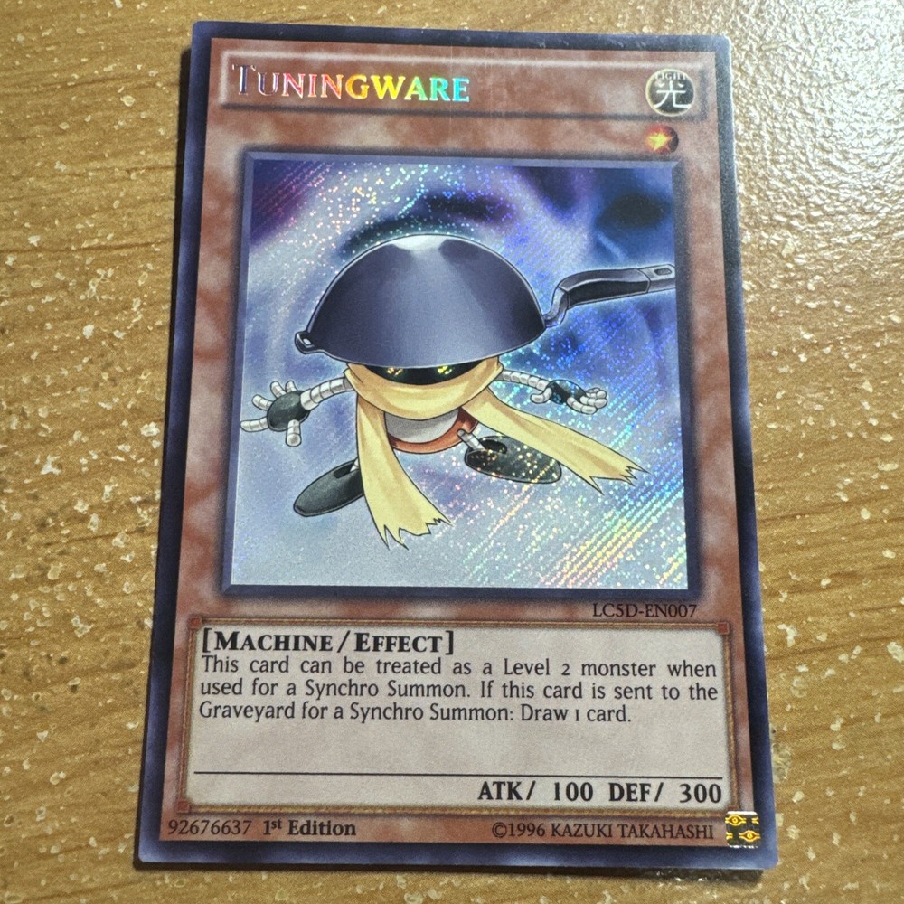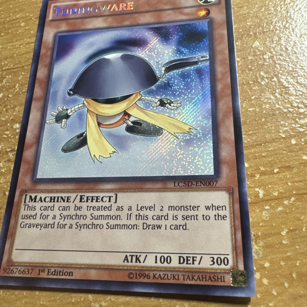 š„ YUGIOH Tuningware LC5D-EN007 SECRET RARE NEAR MINT 1ST EDITION This item will be sent in a plastic sleeve/deck protector sleeve and in a toploader for maximum protection. Shipping is FREE! Payment is due immediately. The faster the payment the faster i'll ship out. Questions or comments?? Feel free to contact me. I'll get back to you within 24 hours. Check out my eBay store for more Yugioh items! This Yu-Gi-Oh! TCG card is the rare and highly sought-after Tuningware LC5D-EN007 from the Legendary Collection 5D's set. It features a holographic finish and is a Secret Rare card, making it a valuable addition to any collection. The card is made of high-quality card stock and is in English language. With a card size of Japanese and a creature/monster type of Machine, this Tuningware card is an Effect type card with the attribute of Light. The card number is LC5D-EN007 and it was manufactured by Konami in the United States. This 1st Edition card is perfect for collectors and players alike.