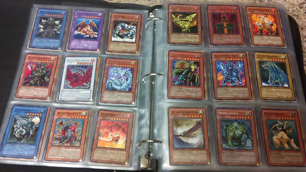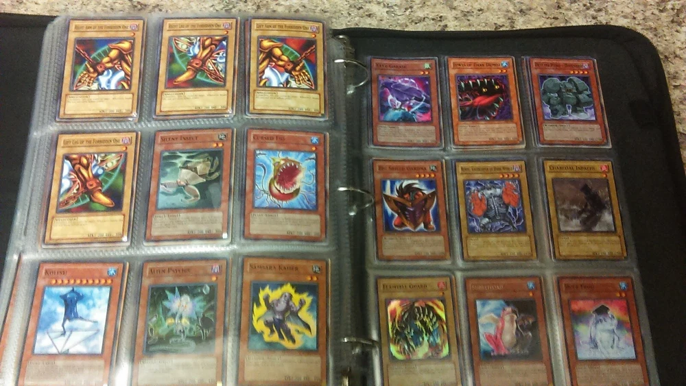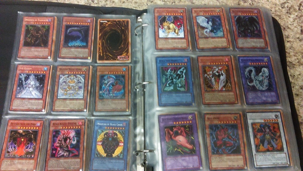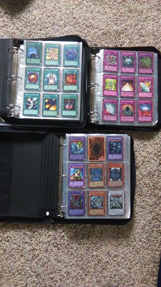 This is my whole entire collection of YUGIOH cards since I started collecting. I have all the cards in mint condition and there is a mint condition 1st edition Blue Eyes from Duelist Pack Kaiba in here as well. The binders have the monster cards in one binder, trap cards in another, and the spell cards in the third binder. There is a mirror force out of MRD and Pyramid of Light in here from the movie collection along with a Blue Eyes Shining Dragon. Shoot me your best offer and message me if you have any questions. I believe there's around 3,000 cards (2464 to be exact in all 3 binders + 5 extra from the DLG1 set) overall in this collection and there's plenty of foils along with a set of Exodia in here from DLG. Message me if you have questions or interested in buying the collection. There are 1339 cards in the monster binder. 1331 are monster cards and the other 8 are tokens. The monster binder has 99 limited edition cards and 406 1st edition cards with 49 or 50 secret rares, 4 ultimate rares, 62 ultra rares, 96 super rares, and 155 rare cards. The spell binder has 626 cards overall with 225 1st edition cards and 16 limited edition cards. There are 8 secret rares, 9 ultra rares, 1 ultimate rare that's a 1st edition from the CDIP pack, 33 super rares, and 64 rare cards overall in the spell card binder. The trap card binder has 499 trap cards plus 5 extra monster cards from the DLG1 set (Red-Eyes B. Dragon and 4 pieces of Exodia). Message me if you have questions and interested in purchasing my collection. I can always send more pictures.