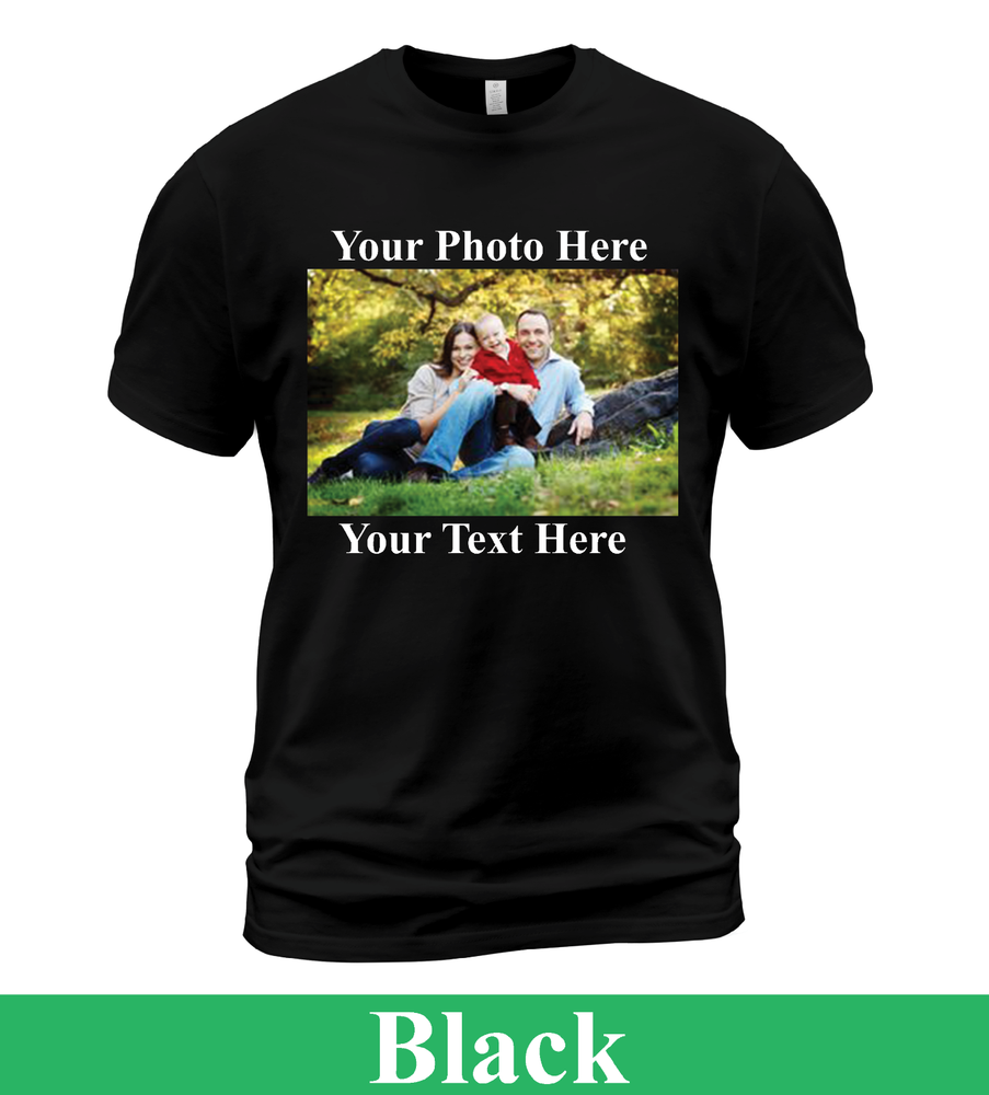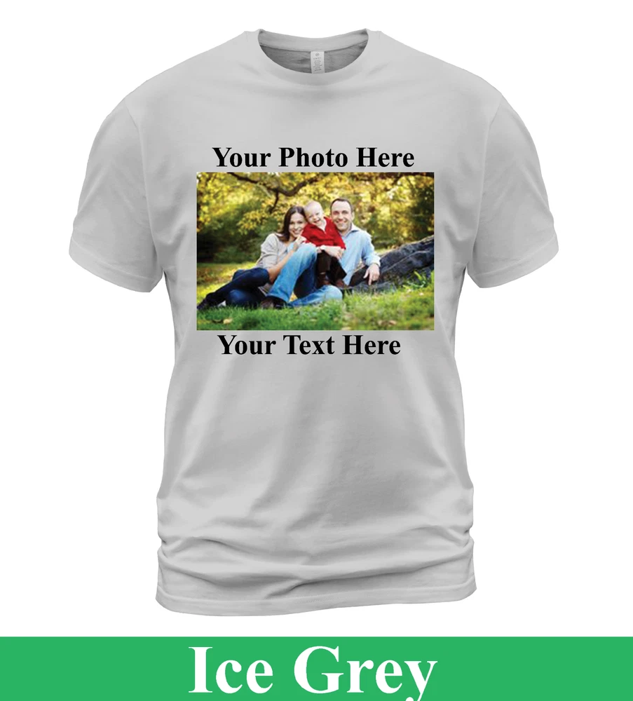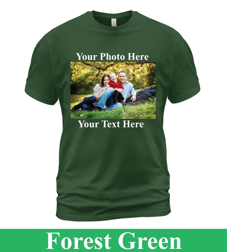 Your Photo Shirt, Custom T-shirt Picture, Custom T-Shirt Graphic, Your Photo and Any Text, T-shirt Picture, T-shirt Photo, Tee T-shirt FREE SHIPPING! FAST DELIVERY! DOMESTIC SHIPPING! Delivery from 3 to 7 business days! Features and further details Stay classy and unique with custom cotton and a pretty thick t-shirt. The print on demand t-shirt is designed with a crew neckline, short sleeves for better comfort, taped neck and shoulders, and double-needle sleeves for enhanced durability. It?s a good choice for both men and women. Material: 5.3 oz/yd², Dark Heather, Graphite Heather, Heather Navy, Heather Red, Tweed (50% cotton, 50% polyester); Sport Grey, Antique Irish Green, Antique Orange, Antique Sapphire (90% Cotton/10% polyester), Ash (99% Cotton/ 1% Polyester), All Others (100% cotton). Classic, unisex fit - Comfortable to wear and suitable for anyone to wear. Non-stitched, classic width, rib collar. Printing technique: Direct to Garment. Color: Ash, Black, Charcoal, Dark Chocolate, Dark Heather, Forest Green, Gold, Ice Grey, Irish Green, Kiwi, Light Blue, Light Pink, Maroon, Military Green, Navy, Orange, Purple, Red, Royal, Sand, Sport Grey, Tropical Blue, Turf Green, White, Antique Irish Green, Antique Orange, Antique Sapphire, Azalea, Cardinal Red, Carolina Blue, Cobalt, Coral Silk, Cornsilk, Daisy, Graphite Heather, Heather Navy, Heather Red, Heliconia, Lime, Natural, Sapphire, Tweed. Size: S, M, L, XL, 2XL, 3XL, 4XL, 5XL. Blank product: Gildan 5000 Shipping We shipping from US for all orders! We offer FREE shipping on all orders! We ship within Three business days of payment, usually sooner. We use a selection of shipping services such as UPS, FedEx, USPS etc. We only ship to the lower 48 states, no APO/FPO addresses or PO Boxes allowed. Local pickups and combined shipping options are not provided at this time. Feedback Customer satisfaction is very important to us. If you have any problem with your order, please contact us and we will do our best to make you satisfied. Contact Us If you have any queries, please contact us via ebay. We usually respond within 24 hours on weekdays. Please visit our store to check out other items for sale! Thank you for shopping at our store.