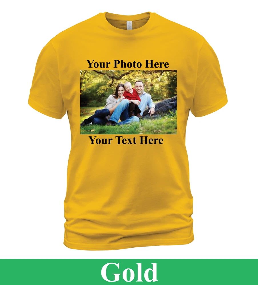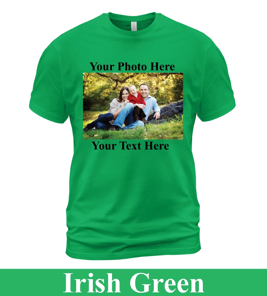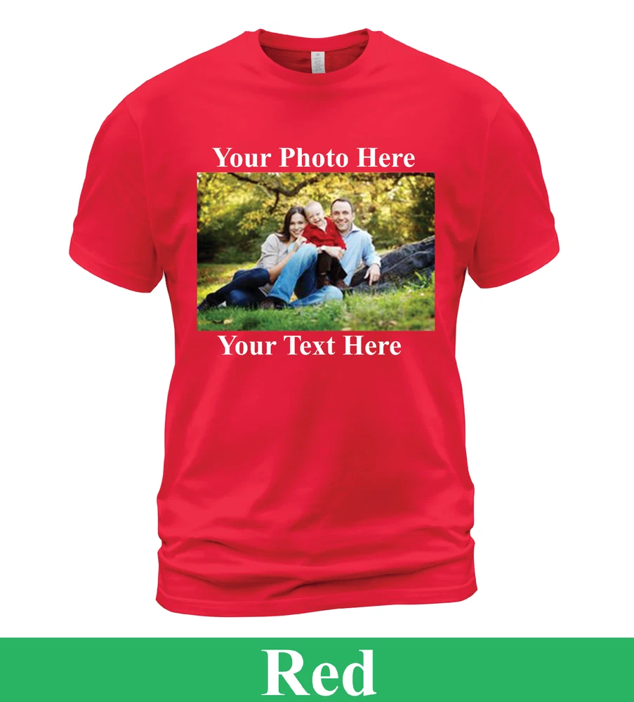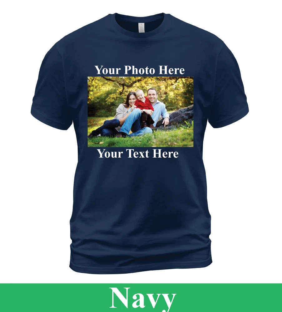 Your Photo Shirt, Custom T-shirt Picture, Custom T-Shirt Graphic, Your Photo and Any Text, T-shirt Picture, T-shirt Photo, Tee T-shirt FREE SHIPPING! FAST DELIVERY! DOMESTIC SHIPPING! Delivery from 3 to 7 business days! Features and further details Stay classy and unique with custom cotton and a pretty thick t-shirt. The print on demand t-shirt is designed with a crew neckline, short sleeves for better comfort, taped neck and shoulders, and double-needle sleeves for enhanced durability. It?s a good choice for both men and women. Material: 5.3 oz/yd², Dark Heather, Graphite Heather, Heather Navy, Heather Red, Tweed (50% cotton, 50% polyester); Sport Grey, Antique Irish Green, Antique Orange, Antique Sapphire (90% Cotton/10% polyester), Ash (99% Cotton/ 1% Polyester), All Others (100% cotton). Classic, unisex fit - Comfortable to wear and suitable for anyone to wear. Non-stitched, classic width, rib collar. Printing technique: Direct to Garment. Color: Ash, Black, Charcoal, Dark Chocolate, Dark Heather, Forest Green, Gold, Ice Grey, Irish Green, Kiwi, Light Blue, Light Pink, Maroon, Military Green, Navy, Orange, Purple, Red, Royal, Sand, Sport Grey, Tropical Blue, Turf Green, White, Antique Irish Green, Antique Orange, Antique Sapphire, Azalea, Cardinal Red, Carolina Blue, Cobalt, Coral Silk, Cornsilk, Daisy, Graphite Heather, Heather Navy, Heather Red, Heliconia, Lime, Natural, Sapphire, Tweed. Size: S, M, L, XL, 2XL, 3XL, 4XL, 5XL. Blank product: Gildan 5000 Shipping We shipping from US for all orders! We offer FREE shipping on all orders! We ship within Three business days of payment, usually sooner. We use a selection of shipping services such as UPS, FedEx, USPS etc. We only ship to the lower 48 states, no APO/FPO addresses or PO Boxes allowed. Local pickups and combined shipping options are not provided at this time. Feedback Customer satisfaction is very important to us. If you have any problem with your order, please contact us and we will do our best to make you satisfied. Contact Us If you have any queries, please contact us via ebay. We usually respond within 24 hours on weekdays. Please visit our store to check out other items for sale! Thank you for shopping at our store.