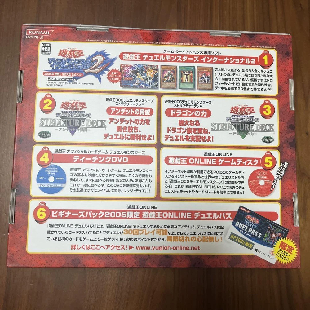 Description Language...Japanese version Type: Yu-Gi-Oh! OCG Duel Monsters Box Pack Single...Box Pack beginners pack 2005 1. Yu-Gi-Oh! Duel Monsters International 2 Game Boy Advance exclusive software 2. Structure Deck: Power of the Dragon 3. Structure Deck Undead Threat 4. Yu-Gi-Oh! Official Card Game Duel Monsters teaching dvd 5. Beginners Pack 2005 Limited Yu-Gi-Oh! Online Duel Pass 6. Yu-Gi-Oh Online Game Disc It seems that it contains. It was stored without being opened after purchase. There are some small scratches because there was no shrinkage from the time of purchase. Since it has been in storage for a long time and is unopened, it is not possible to confirm the contents. Please refrain from asking if you are interested. Shipping Economy shipping/Standard shipping refers to epacket/epacket light with tracking number (2-4 weeks) Expedited Shipping refers to Fedex or DHL or EMS or UPS with tracking number (about 5-10 days) ainow-1 We hope you enjoy items we sell. If you have any question regarding the item or service, please don't hesitate to contact us. We are happy to provide answers promptly and professionally. Please Note Import duties, taxes, and charges are not included in the item price or shipping cost. These charges are the buyer's responsibility. Please check with your country's customs office to determine what these additional costs will be prior to bidding or buying.