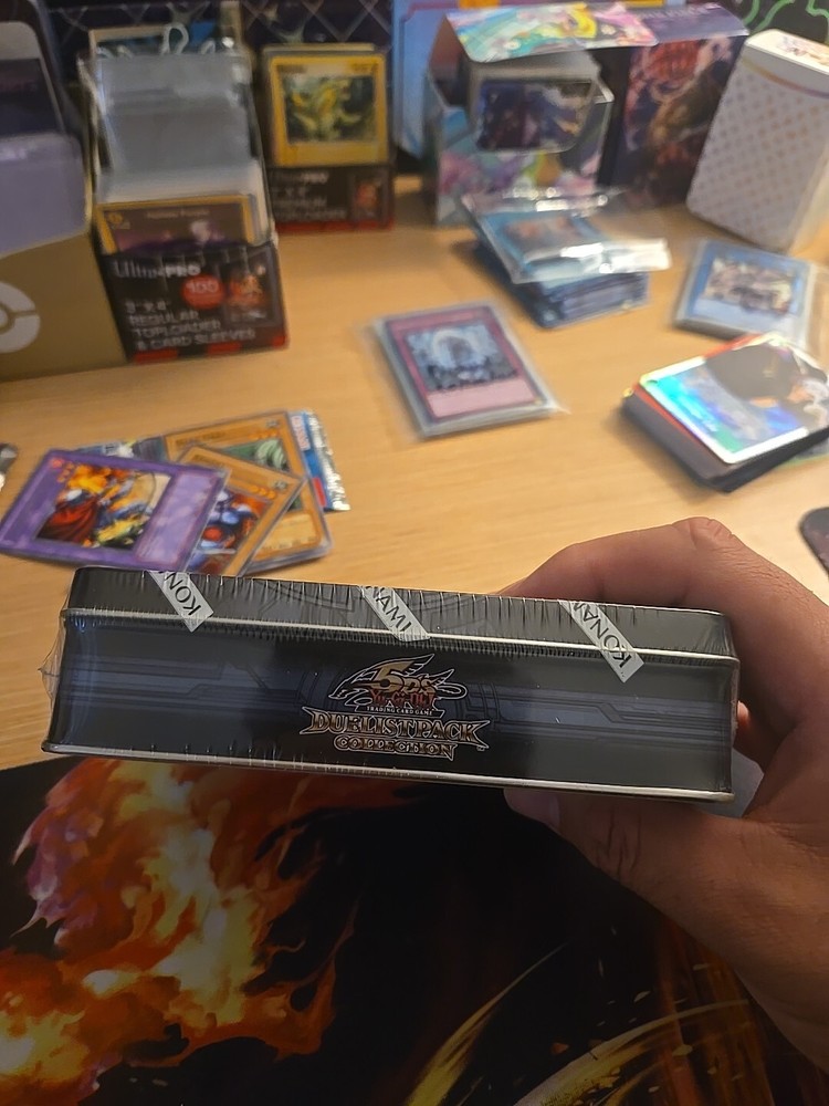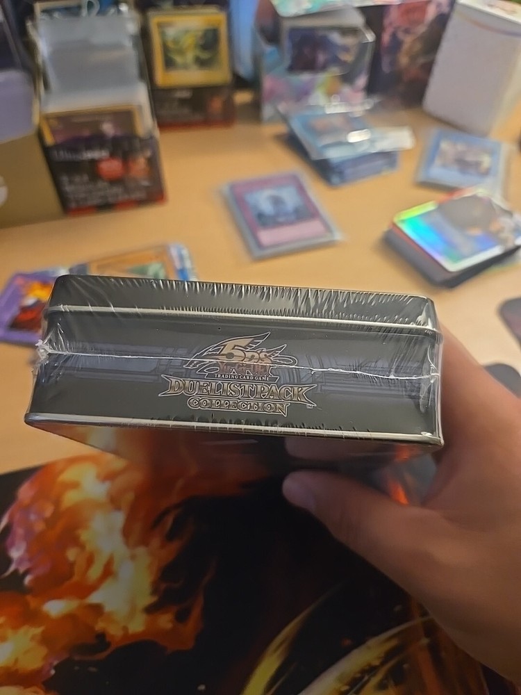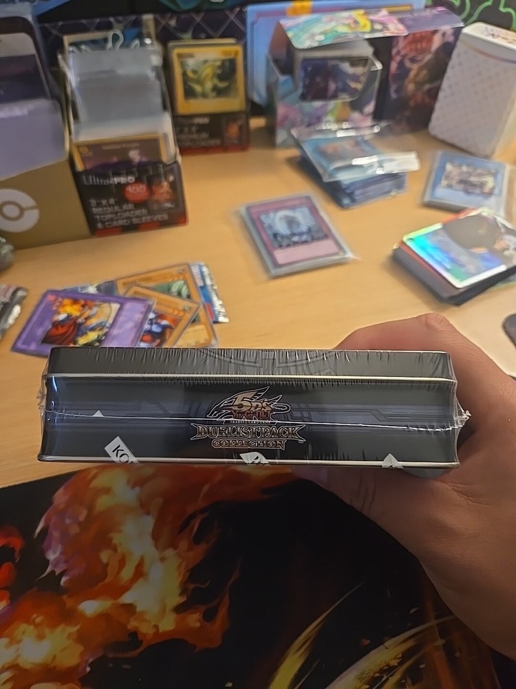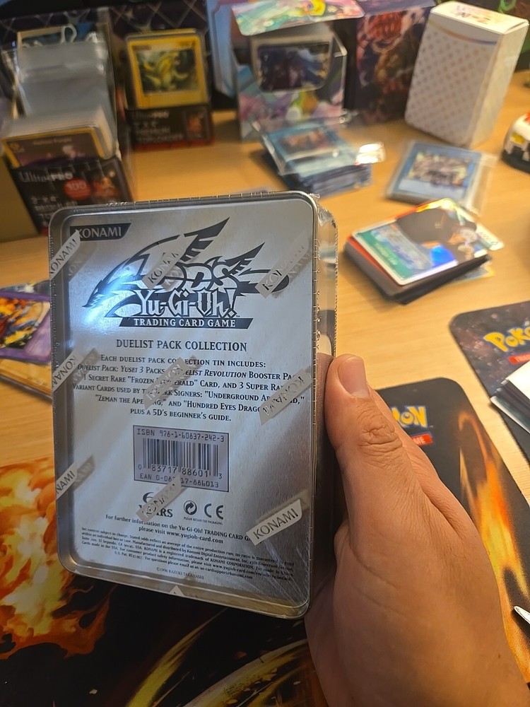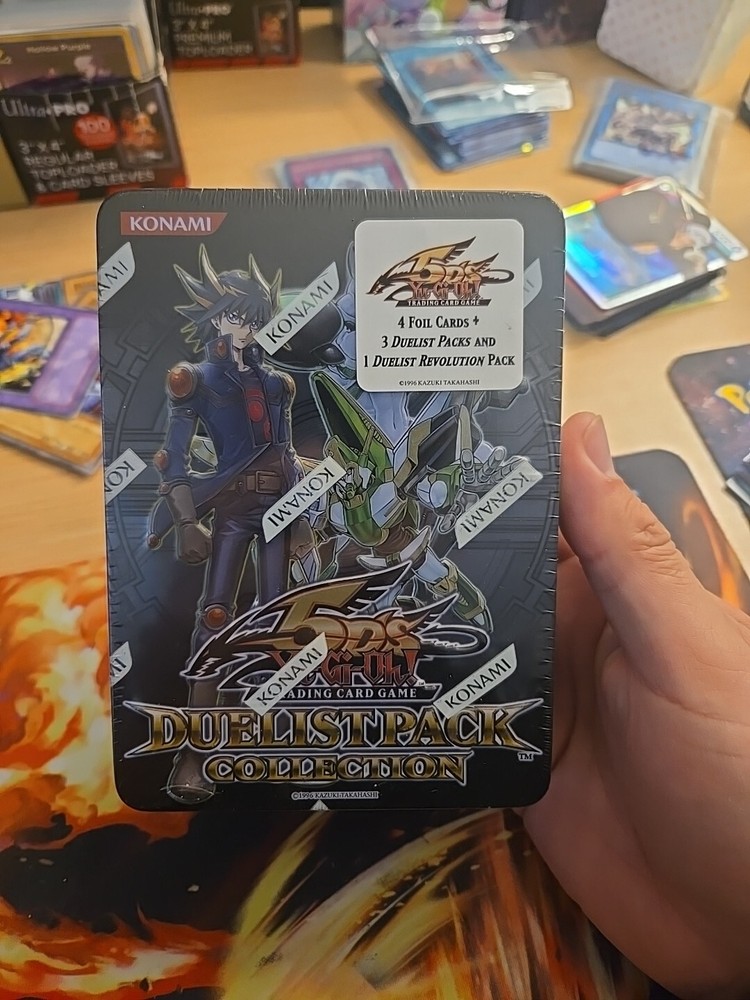 2011 Yugioh 5D's Duelist Pack Collection. The tin includes: 3 Duelist pack: Yusei 3 packs 1 Duelist Revolution booster Pack 4 Foil cards...