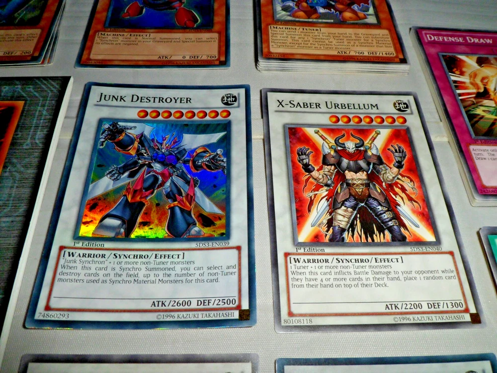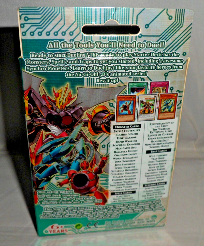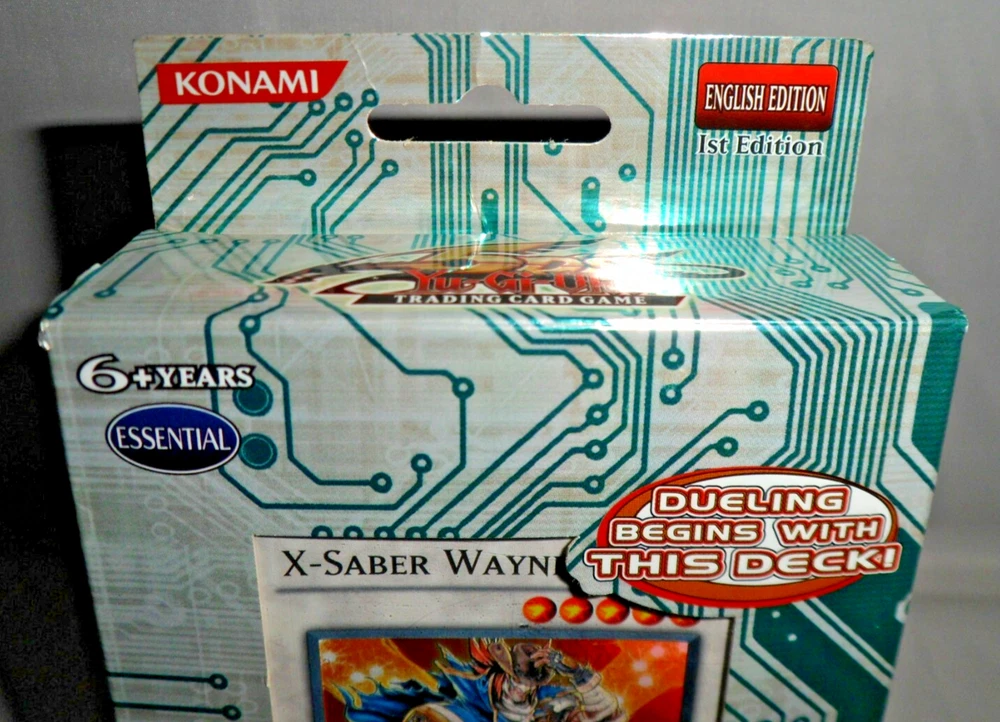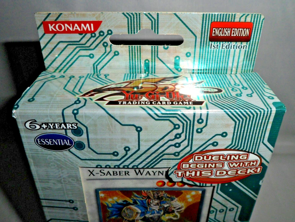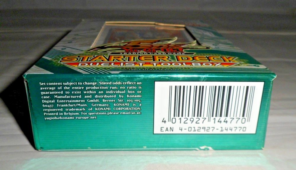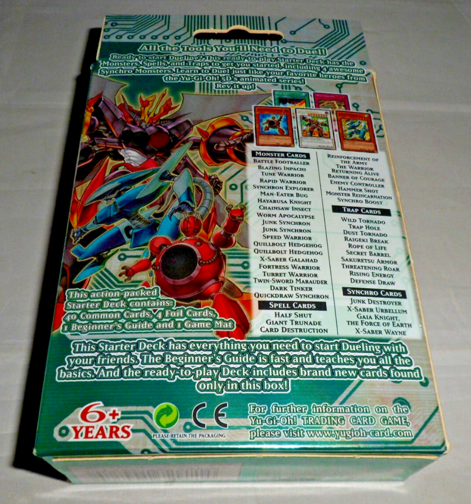 Yu-Gi-Oh YuGiOh 5DS Toolbox Starter Deck (1st Edition, 1996, English). Complete with 44 Cards, Beginner's Guide and Playmat. Holo /Foil cards included: Junk Destroyer, X-Saber Urbellum, Gaia Knight the Force of Earth, X-Saber Wayne. Opened with some minor shelfwear/creases around the surfaces. The cards are mostly in NM condition (some are NM-LP with minor wear to some edges). Please see close-up photos of actual cards and box. The item will be securely packaged for protection during transit.
