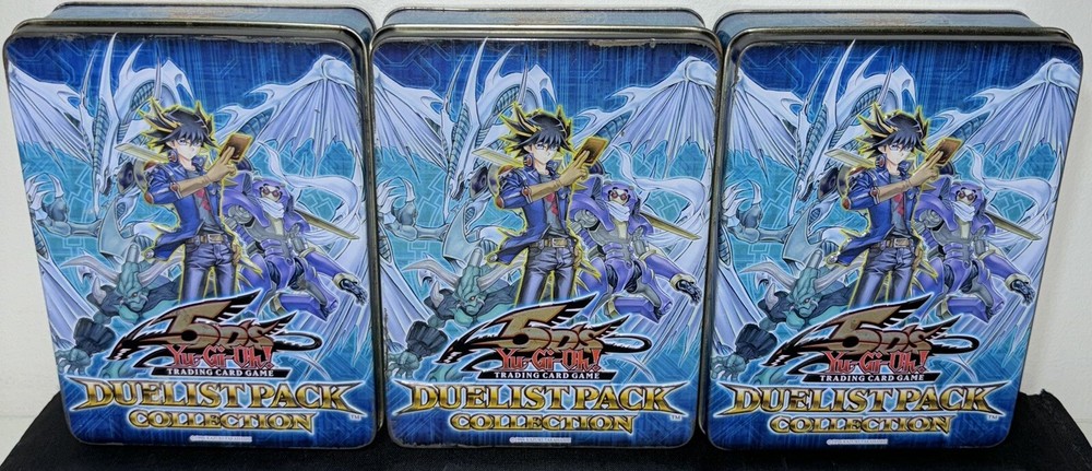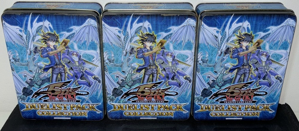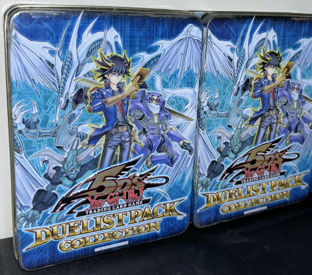 Yu-Gi-Oh 5D's 2008 Collector Tin Duelist Pack Collection Set Of 4. In very good condition, no dents some slights scuffs. Message me with any questions, this purchase is for all 4 tins shown in the pictures.