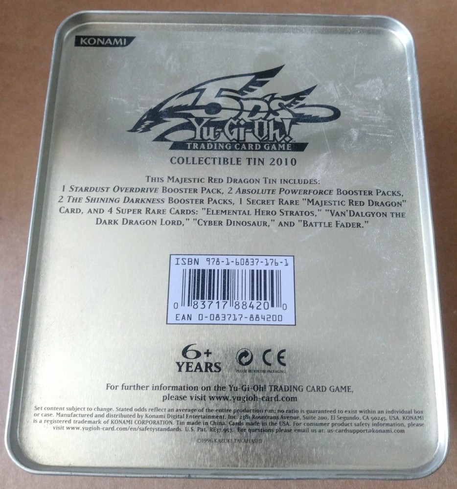 This Listing is for a: Empty Collectable Yugioh Tin Featuring Majestic Red Dragon art on the cover Good Condition (a minor rust spot on cover edge) Please See Photos FREE SHIPPING !! Please see my other listing for more fun stuff Thank you for looking