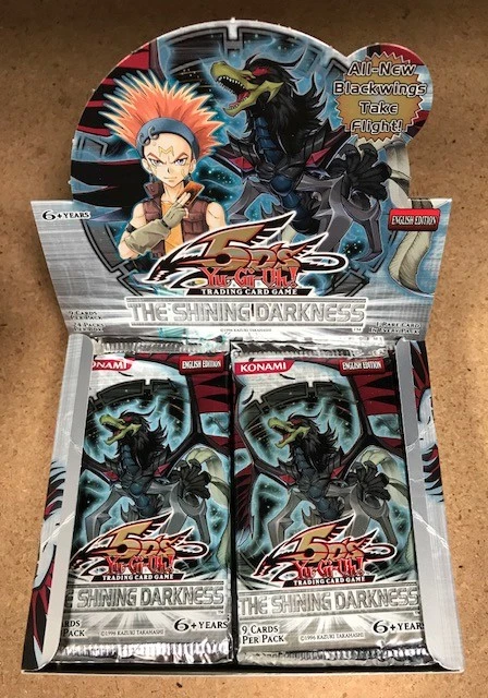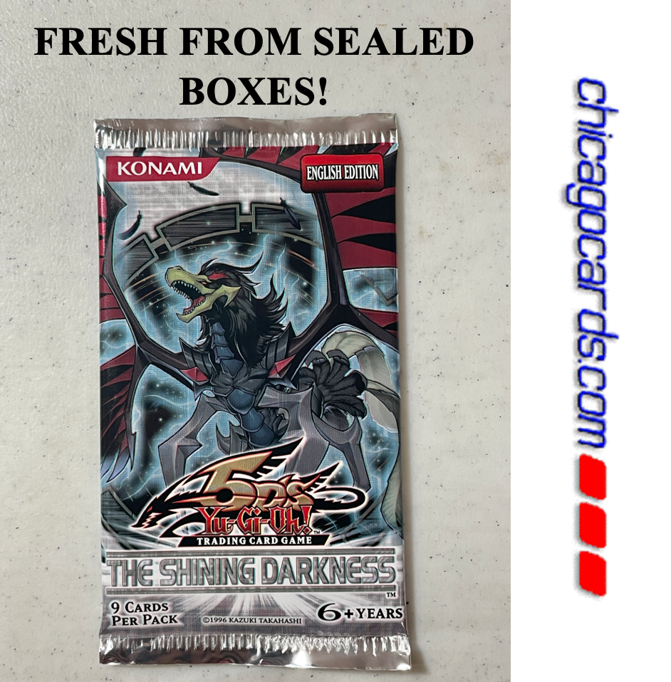 Brand New, Factory Sealed, Fresh off Box Yu-gi-oh! The Shining Darkness 9-Card Booster Pack NOT 1st Edition This is a PACK sale, the box images are to depict that all packs are from a sealed box In New Domino City, five Duelists are marked by destiny to uncover the secrets of the five Dragons. Start your engines and get ready to Duel - the future of YuGiOh! is kickin' into overdrive! More cards, more duels, more excitement: YuGiOh 5D's - rev it up! Includes: 9 Cards (in 1 Sealed Shining Darkness Booster Pack) Collect 48 Common Cards, 20 Rare Cards, 14 Super Rare Cards, 10 Ultra Rare Cards, and 8 Secret Rare Cards Lighting Fast and Secured USPS Shipping with Tracking & Delivery Confirmation USA: Multiple packs purchase gets S&H discount as specified International Shipping is available via eBay's global shipping program eBay sets and collects the shipping cost directly. __________________________________________________ Your order will be processed promptly upon payment. If you are pleased with your order, please leave us a positive feedback and add us as your favorite store For any single cards needs to complete your sets, please shop our singles' .com web site by the same name chicagocards where you can search over 1,000,000 cards: base set, inserts, auto, relic, ...etc Thank you for shopping chicagocardsdotcom serving the Hobby for more than 30 years and look forward to serve you for many more years to come!