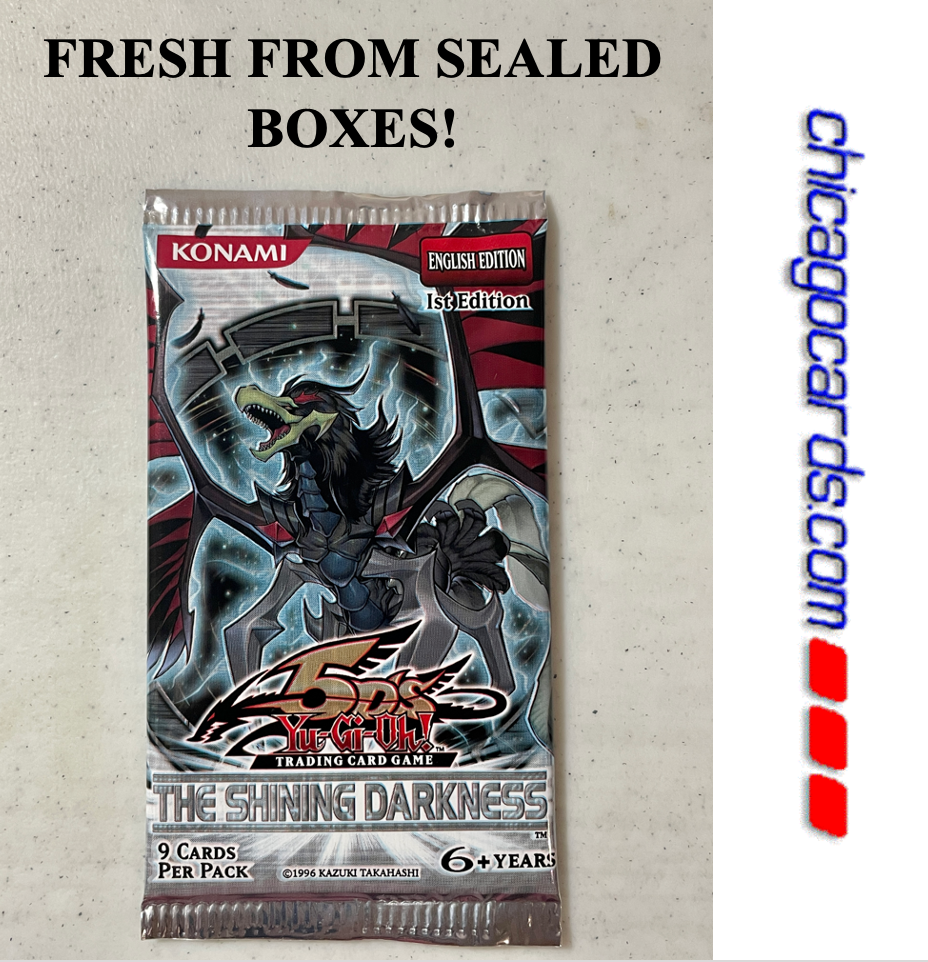 Another offering from Chicago Cards Home of huge selections of boxes, packs, and cards This sale is for One Brand New, Factory Sealed, Box Fresh Yu-Gi-Oh! 5D's Trading Card Game The Shining Darkness Booster Pack English 1st Edition 9 Cards per Pack This is a PACK sale, the box image shows that all packs are fresh from a factory sealed box. ________________________________________________________ About chicagocardsdotcom We've been in the pack selling business on eBay since 1999. We simply open boxes/cases to sell packs, pick randomly; no cherry-picking and sell the leftovers. W e have earned over 40,000 positive feedback (nearly100% Buyers Satisfaction Rating), over 2,000 followers, with many repeat pack buyers providing us with the best testimonies. With over 1,500 packs to select from, we're perhaps the #1 pack super store on eBay. W e would love for you to make us your favorite store: https://www.ebay.com/str/ chicagocardsdotcom While we have plenty of positive feedback sharing their decent pulls. we don't, however, guarantee that you'll always get a "good" pack every time. Even manufacturers don't do that. All the odds they stated were based on the entire production run. There were situations that even sealed boxes/cases didn't meet your or our expectations. __________________________________________________________ Lighting Fast and Secured USPS Shipping in Bubble Envelope with Tracking & Delivery Confirmation USA: Multiple packs purchase gets S&H discount as specified International Shipping is available via eBay's global shipping program eBay sets and collects the shipping cost directly. __________________________________________________ Your order will be processed promptly upon payment. If you are pleased with your order, please leave us a positive feedback and add us as your favorite store For any single cards needs to complete your sets, please shop our singles' .com web site by the same name chicagocards where you can search over 1,000,000 cards: base set, inserts, auto, relic, ...etc Thank you for shopping chicagocardsdotcom serving the Hobby for more than 30 years and look forward to serving you for many more years to come