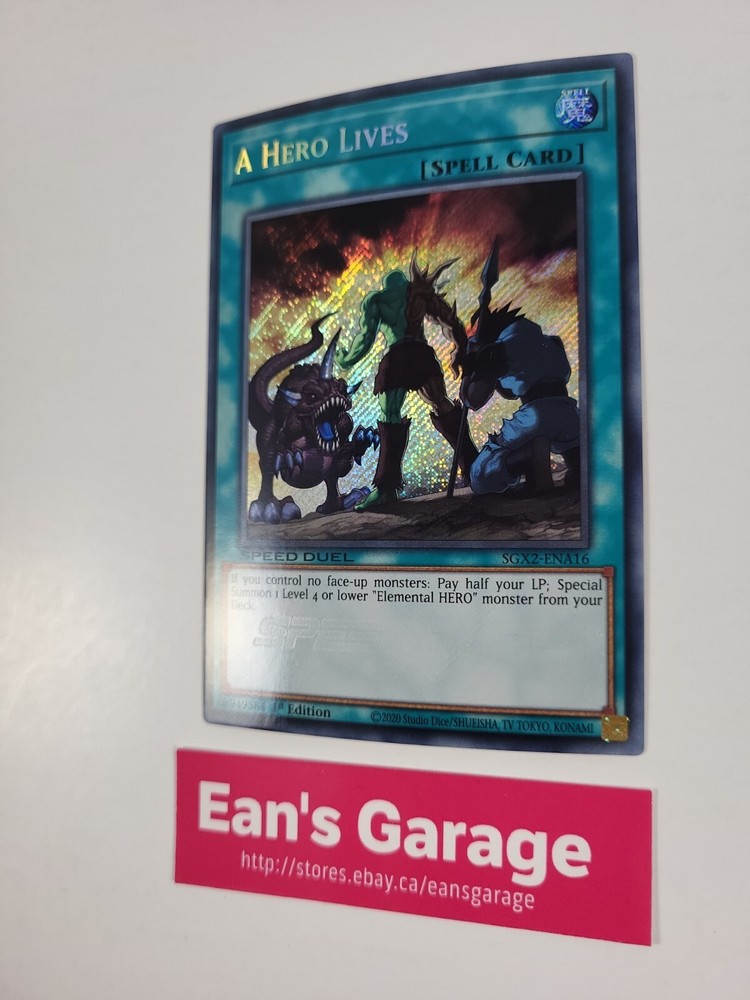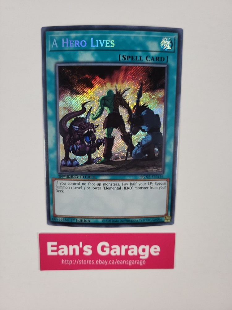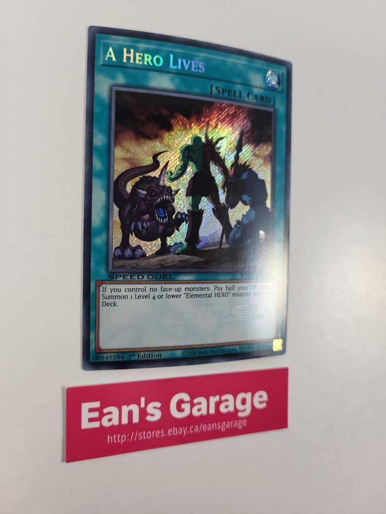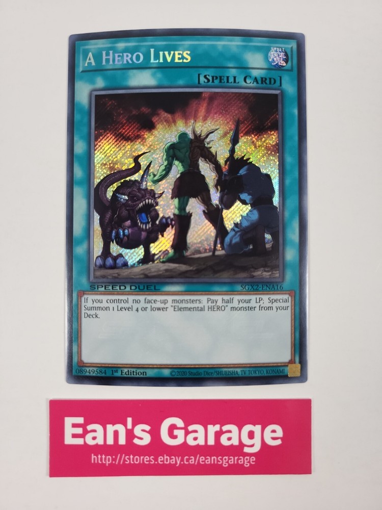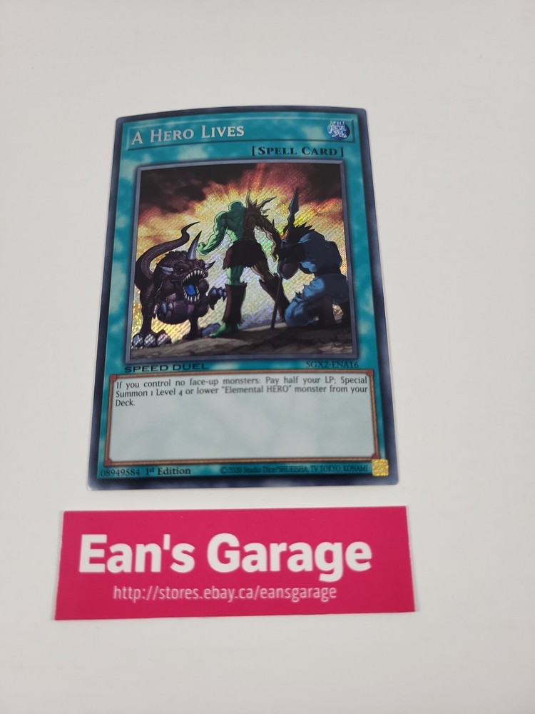 Yu-Gi-Oh! A Hero Lives 1st Edition Secret Rare Holo Speed Duel GX: Midterm Paradox SGX2-ENA16 Condition: Mint Details (+): Bright and glossy colors, firm and flat, no tearing, no stains, no folds Secret Rare: Holographic rainbow image, name and attribute NOTES: All our cards are new and never been played All cards include a rigid Toploader card holder and a clear protective sleeve Please see pictures and read the information below SAVE ON SHIPPING! COMBINED SHIPPING SAVINGS APPLY AUTOMATICALLY WHEN YOU ADD MULTIPLE ITEMS TO YOUR SHOPPING CART PLEASE READ OUR WARRANTY, SHIPPING AND RETURNS POLICIES BELOW · Condition and grading: · We provide our best judgement based on general comic grading standards, we are not professional or certified graders. · FA: (Fair) Lots of problems, stains, big chunks missing, loose pages, split spline, etc. · GD: (Good) some wear and tear, small tears or small pieces missing, heavy roll on spline · VG: (Very Good) little wear and tear, little gloss, some creases and small folds, yellowish pages, some minor damage on spline but pages are all attached · FN: (Fine) very little wear, minor creases or folds, some stress marks on spline · VF: (Very Fine) minor wear, firm and flat spline, minor folds or bends · NM: (Near Mint) looks glossy and new, firm and flat, very minor marks · MN: (Mint) almost perfect condition · Gem Mint: perfect condition.... Warranty Contact us if you have any issues with an order as your first step, we will do our best to resolve any problems in a fast and professional way. We have done our best to describe the items we sell as accurate as possible, again, if you have any questions, please ask before shopping Our games and movies are tested so we guarantee they are in good operational condition, regardless, if any issues arise within 48 hours after receiving your items, please contact us. There is no guarantee for any download codes or it's validity and in many cases we ignore if they would've been part of the original package, therefore: No download codes, skins or manuals are included unless noted otherwise. Shipping We combine shipping Within Canada and the U.S: Canadapost Lettermail or Small Packets USA air are our default - transit time can be up to 15 business days (Monday thru Friday) depending on your location. Transit time and Customs clearing are beyond our control. International shipping options may vary depending on your location and might take up to 4 weeks depending on the shipping service you select and it's availability, again, transit time and Customs Clearing are beyond our control. For faster and traceable services please pick Expedited, Express or Priority. Regular letterpost and most Economy services DO NOT include a tracking number We ship within 48 hours (Monday thru Friday), this means that we take your parcel to the postal office, beyond that point is up to the carrier (Canadapost, FedEx or UPS) Please consider these facts when leaving feedback and rating us since we are not the operators. Orders placed on Friday after 3 pm, Saturday or Sunday will be shipped on Monday. Returns 1.- Contact us 2.- Let us know what is the problem immediately after receiving 3.- Only valid reasons for a return are: wrong item or defective item 4.- Do not unpack or use the item(s) 5.- Item(s) must be returned in exact condition as they were shipped by using a traceable postal service Track Page Views With Auctiva's FREE Counter