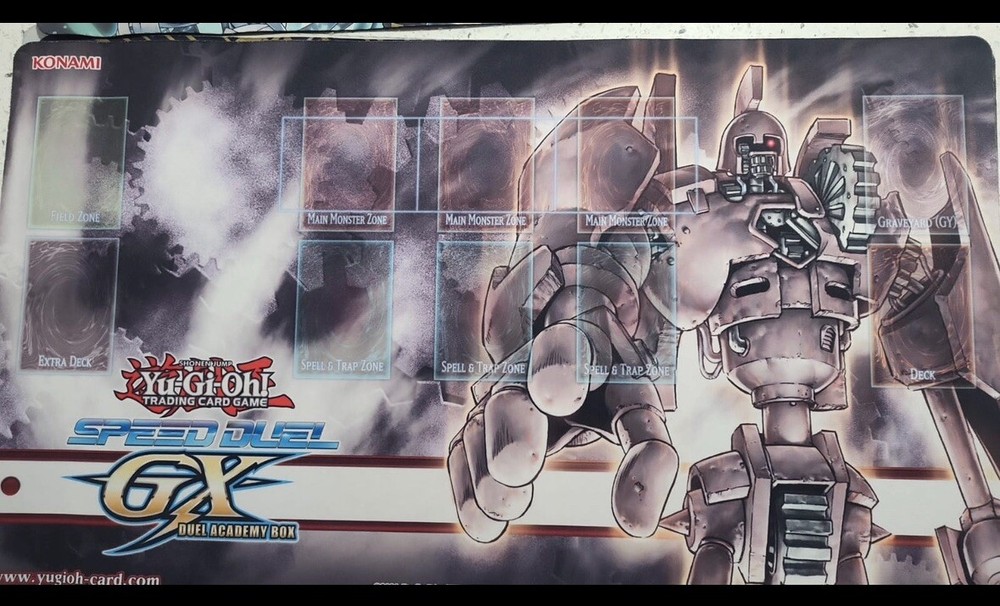 YuGiOh - Ancient Gear Golem Playmat - Speed Duel GX - Duel Academy Box. Condition is Used. Shipped with USPS Ground Advantage.