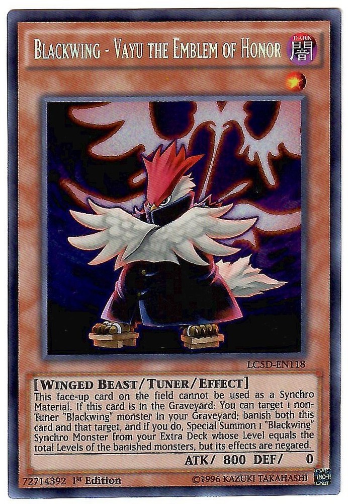 This Listing is for 1 copy of "Blackwing - Vayu the Emblem of Honor" LC5D-EN118, Secret Rare, 1st Edition from the Mega Pack Legendary Collection 5D's. This card shown is in Near Mint condition. The image is a scan of both the Front and Back of the card. Please feel free to ask any questions you may have. Be sure to check out the other cards that I have for sale to see if there's anything else you may be looking for. Purchase together to save money on shipping!!! Combine Item weight shipping: For singles or playsets when purchased at the same time if total is under $30 1 listing - $0.69 2 listings - $0.97 3 listings - $1.25 FREE Shipping on multiple purchases totaling over $30 when bought together during checkout.