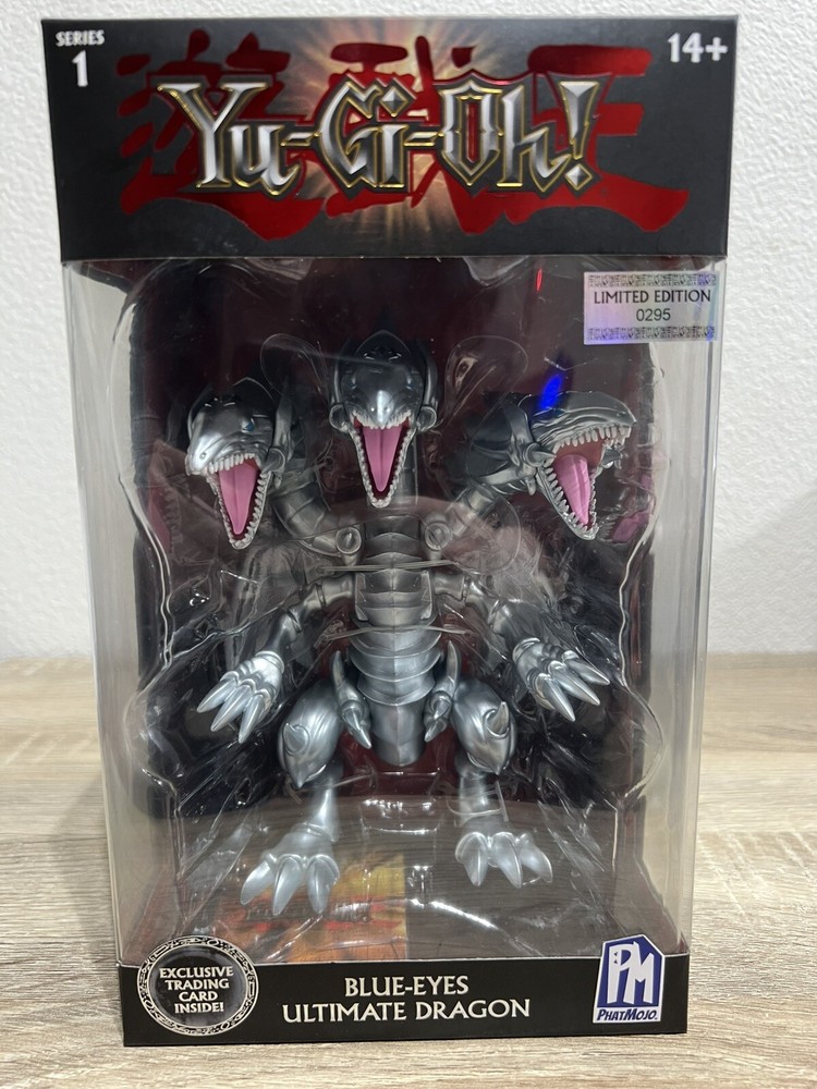 This exclusive trading card features the iconic Blue Eyes Ultimate Dragon from the popular Yu-Gi-Oh! franchise. Made of high-quality plastic, this limited edition action figure is a must-have for any fan. The card is part of the PhatMojo Series 1 and is numbered #0295. The Blue Eyes Ultimate Dragon is depicted in a stunning silver color and is perfect for collectors or anyone who wants to add a unique item to their Yu-Gi-Oh! collection. This original, licensed reproduction is suitable for ages 14+ and is sure to impress. Don't miss out on the chance to own this rare and highly sought-after item.