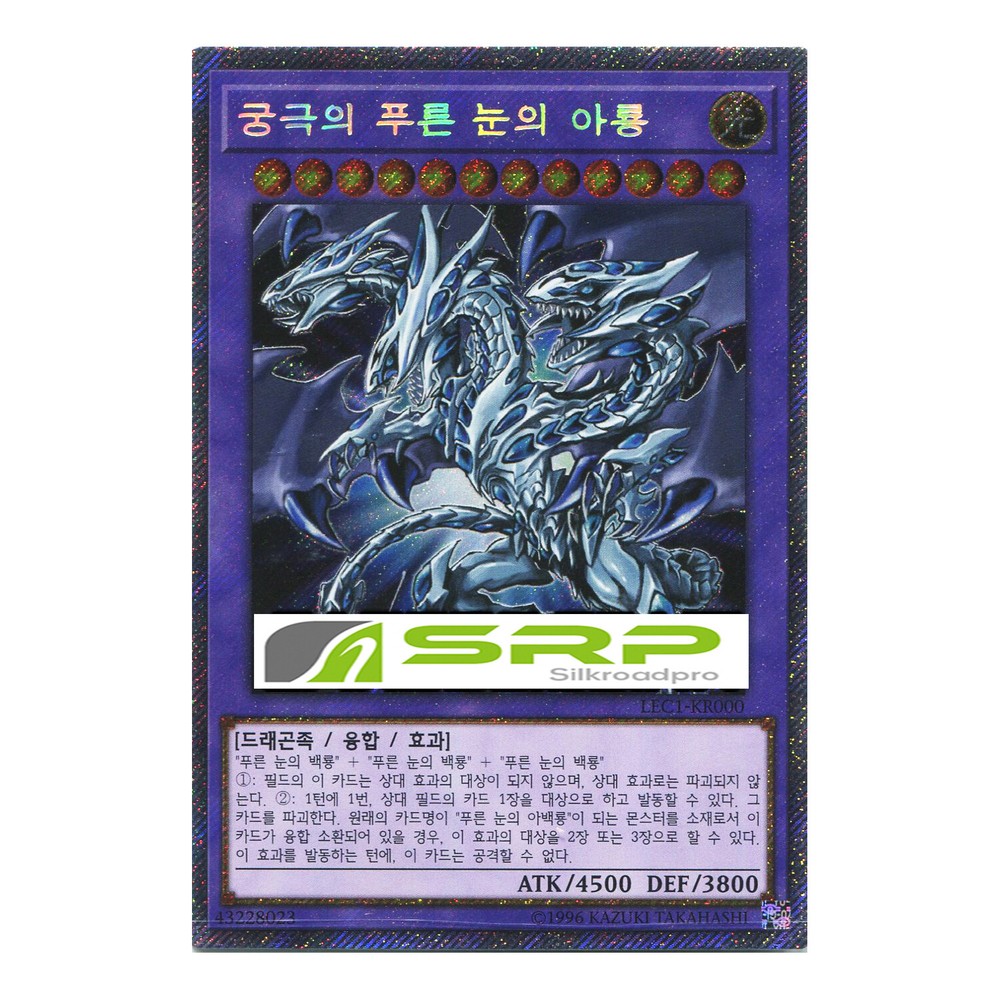 YuGiOh Card "Blue-Eyes Alternative Ultimate Dragon" Extra Secret Rair Korean Ver LEC1-KR000 Product Features *Near Mint *Ship From Korea *Original Konami Korean Ver Specifications Brand Konami Model Blue-Eyes Alternative Ultimate Dragon Extra Secret Rare Includes 1 Card Manufacture Konami Condition Near Mint Store Policy SHIPPING Economic shipping takes about 20-25 business days. (No Tracking Number) Standard shipping takes about 10-15 business days. (Tracking package) Expedited shipping takes about 5-6 business days. (Tracking package) Note * Carrier : Korea Post * Handling Time : 1~3 Business Days * Tracking Site: http://www.17track.net/ PAYMENTS We accept the payments through the PayPal only. We have partnered with Paypal to offer you the very best in payment services. PayPal allows you to buy with confidence. Items must be paid within 7 days of auction ended. Otherwise, we can't guarantee your item is still available. RETURNS If for any reason you are not satisfied with our product, Please email us within 30 days after receipt for return or exchange. All items need to be returned in original unused & NOT opened condition. Buyer have to pay return shipping cost TAX&CUSTOMS The policy of customs clearance may differ form each country. We are not responsible for any applicable customs charge, taxes and duties. Import duties & tax charges are buyer?s responsibility. Please check with your country?s customs office to determine what these additional costs will be prior to bidding or buying . If you have any problem, please contact us via eBay message.