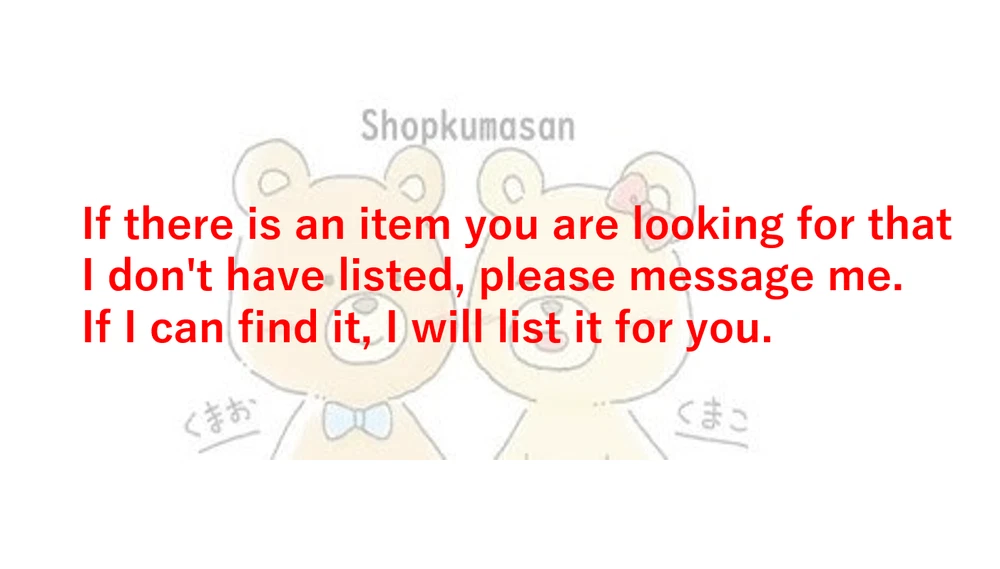 Economy shipping requires a signature from the person receiving the package upon delivery. If the package is returned to me without being delivered, I generally do not redeliver it. Item Description Condition: New Our Policy My product is 100% authentic, so feel free to buy it. We will ship the product in the pictures. Please check the photos to make sure this is the item you want to purchase. If there is an item you are looking for that I don't have listed, please message me. If I can find it, I will list it for you. Shipping I have to pack many item and ship them by myself every day, so I have state that I usually ship within 5~ 10 days after the purchase Economy shipping: It takes 1-2 weeks after shipment by Japan post. Expedited shipping: It takes 3-7 days after shipment by FedEx or EMS International Buyers - Please Note: Import duties, taxes, and charges are not included in the item price or shipping cost. These charges are the buyer's responsibility. Please check with your country's customs office to determine what these additional costs will be prior to bidding or buying.