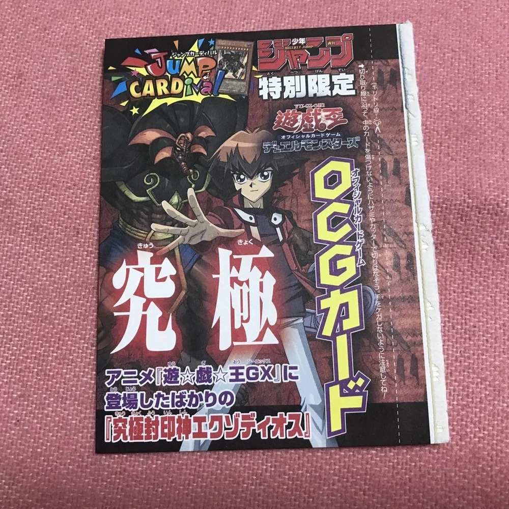 Yu-Gi-Oh! Card V-Jump Weekly Jump Bag Items 7 + 6 Bonus Japan Key Features - Seven early Yu-Gi-Oh! cards originally sold as magazine inserts in Jump and V Jump magazines, carefully cut out and stored to prevent tearing. - Includes six additional cards with opened packaging, offered as bonus items. - Cards are visible from outside the packaging. - Shipped in a zip bag via Nekopos. - Please refer to the ninth photo for details. - Packaging photos are also included. - Price negotiations are not accepted. Item Specifics: Brand: Yu-Gi-Oh! Type: Trading Card Number of Cards: 7 + 6 bonus cards Condition: Used, some cards with opened packaging, cards visible from outside Specifications Brand Bandai Country Japan Franchise Yu-Gi-Oh! TV Show Yu-Gi-Oh! Color Multicolor Country/Region of Manufacture Japan Theme Animation Animation Studio Yu-Gi-Oh! Movie Yu-Gi-Oh! Language Japanese Features Animation Product Description Item Description Condition: Used Our Policy My product is 100% authentic, so feel free to buy it. We will ship the product in the pictures. Please check the photos to make sure this is the item you want to purchase. If there is an item you are looking for that I don't have listed, please message me. If I can find it, I will list it for you. Shipping I have to pack many item and ship them by myself every day, so I have state that I usually ship within 5~ 10 days after the purchase Economy shipping: It takes 1-2 weeks after shipment by Japan post. Expedited shipping: It takes 3-7 days after shipment by FedEx or EMS International Buyers - Please Note: Import duties, taxes, and charges are not included in the item price or shipping cost. These charges are the buyer's responsibility. Please check with your country's customs office to determine what these additional costs will be prior to bidding or buying. If there is an item you are looking for that I don't have listed, please message me. If I can find it, I will list it for you.