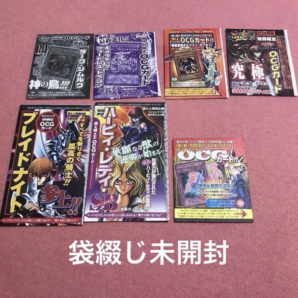 This Yu-Gi-Oh! V-Jump Weekly Jump Bag is a must-have for collectors! It includes seven rare magazine-insert cards, carefully preserved, plus six bonus cards—all visible through the packaging. The zip bag keeps everything secure, and the photos provided make it easy to verify the condition. No haggling, but the value is fantastic for fans of classic Yu-Gi-Oh! cards. Highly recommended!