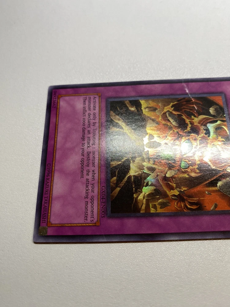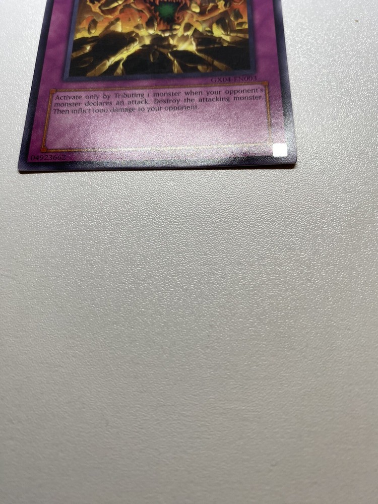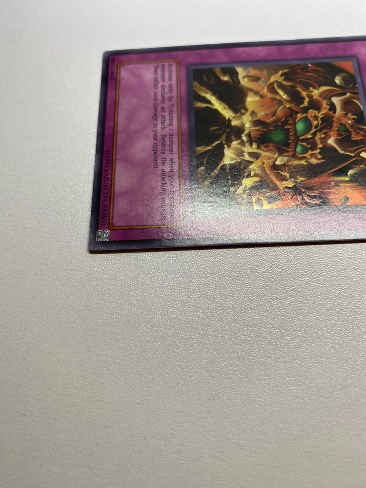 It is damaged heavily played. Check pictures to see details on condition of the card. The front and back of the card are very dirty from gameplay. The front and the back are very scratched from gameplay. The four corners are very scratched up, bent, creased and dented. There is a big bent/crease on the front left edge that also affects the back. “eBay International Shipping Program” and USA shipping only. No international shipping. I do combine/bundle shipping, so if it charges you high shipping price during adding to your cart (example: $20 or more), and it costs me (example: between $5 through $15), ill refund/discount the shipping discount difference. I do use recycled shipping items to stay eco friendly for our beautiful earth. Please leave positive feedback, and I will return positive feedback for better customer satisfaction, thanks.