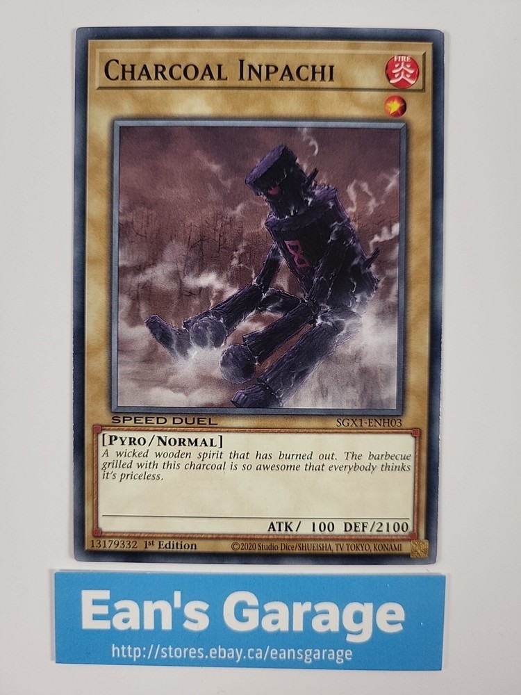 Yu-Gi-Oh! Charcoal Inpachi 1st Edition common Speed Duel GX: Duel Academy SGX1-ENH03 Condition: Mint Details (+): Bright and glossy colors, firm and flat, no tearing, no stains, no folds NOTES: All our cards are new and never been played All cards include a rigid Toploader card holder and a clear protective sleeve Please see pictures and read the information below SAVE ON SHIPPING! COMBINED SHIPPING SAVINGS APPLY AUTOMATICALLY WHEN YOU ADD MULTIPLE ITEMS TO YOUR SHOPPING CART PLEASE READ OUR WARRANTY, SHIPPING AND RETURNS POLICIES BELOW · Condition and grading: · We provide our best judgement based on general comic grading standards, we are not professional or certified graders. · FA: (Fair) Lots of problems, stains, big chunks missing, loose pages, split spline, etc. · GD: (Good) some wear and tear, small tears or small pieces missing, heavy roll on spline · VG: (Very Good) little wear and tear, little gloss, some creases and small folds, yellowish pages, some minor damage on spline but pages are all attached · FN: (Fine) very little wear, minor creases or folds, some stress marks on spline · VF: (Very Fine) minor wear, firm and flat spline, minor folds or bends · NM: (Near Mint) looks glossy and new, firm and flat, very minor marks · MN: (Mint) almost perfect condition · Gem Mint: perfect condition.... Warranty Contact us if you have any issues with an order as your first step, we will do our best to resolve any problems in a fast and professional way. We have done our best to describe the items we sell as accurate as possible, again, if you have any questions, please ask before shopping Our games and movies are tested so we guarantee they are in good operational condition, regardless, if any issues arise within 48 hours after receiving your items, please contact us. There is no guarantee for any download codes or it's validity and in many cases we ignore if they would've been part of the original package, therefore: No download codes, skins or manuals are included unless noted otherwise. Shipping We combine shipping Within Canada and the U.S: Canadapost Lettermail or Small Packets USA air are our default - transit time can be up to 15 business days (Monday thru Friday) depending on your location. Transit time and Customs clearing are beyond our control. International shipping options may vary depending on your location and might take up to 4 weeks depending on the shipping service you select and it's availability, again, transit time and Customs Clearing are beyond our control. For faster and traceable services please pick Expedited, Express or Priority. Regular letterpost and most Economy services DO NOT include a tracking number We ship within 48 hours (Monday thru Friday), this means that we take your parcel to the postal office, beyond that point is up to the carrier (Canadapost, FedEx or UPS) Please consider these facts when leaving feedback and rating us since we are not the operators. Orders placed on Friday after 3 pm, Saturday or Sunday will be shipped on Monday. Returns 1.- Contact us 2.- Let us know what is the problem immediately after receiving 3.- Only valid reasons for a return are: wrong item or defective item 4.- Do not unpack or use the item(s) 5.- Item(s) must be returned in exact condition as they were shipped by using a traceable postal service Track Page Views With Auctiva's FREE Counter
