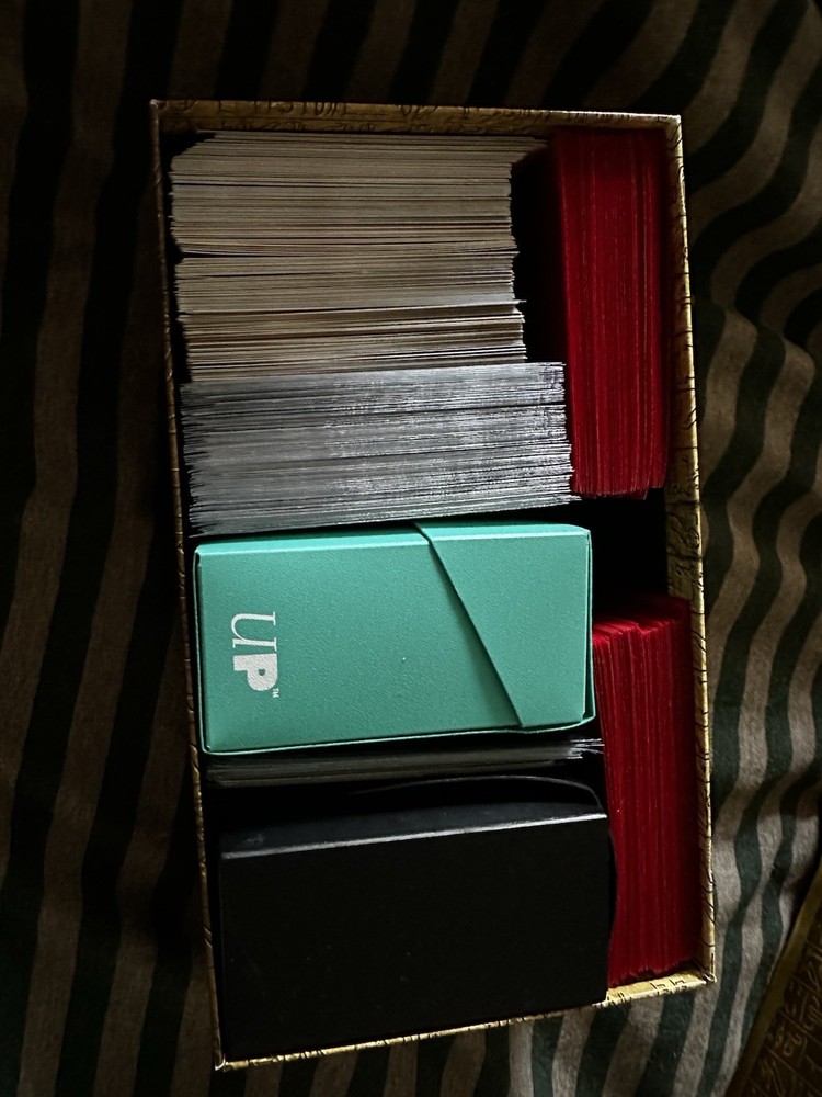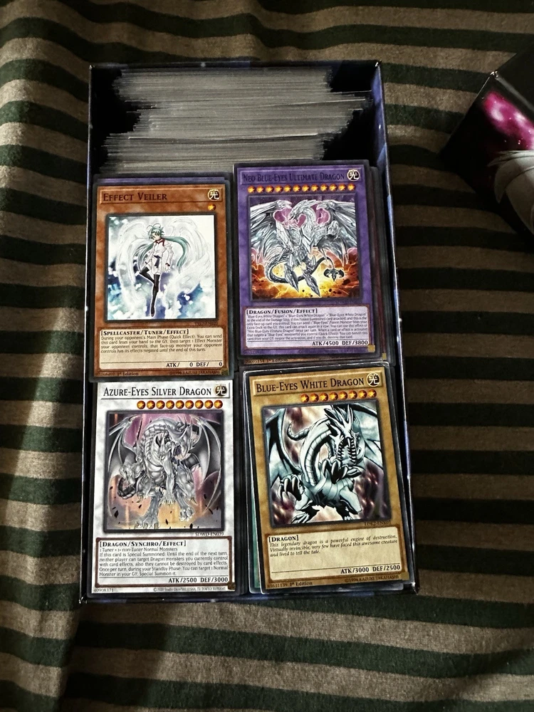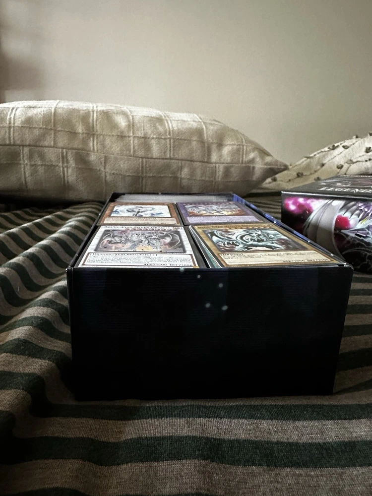 Set includes 2 deck boxes, hundreds of sleeves, some cards are pre sleeved, and the listed amount of cards. Estimayed breakdown of cards are 1,800 Commons, 700 Rares, 240 Holofoils/super rares. All cards came from childhood/years of collecting! Dive into the nostalgia of the Yu-Gi-Oh! TCG with this comprehensive collection of over 2,700 cards featuring iconic characters like Yami Yugi, Seto Kaiba, Joey Wheeler, and Yugi Muto. Spanning various sets including the classic Legend of Blue Eyes White Dragon and the spellcasting extravaganza of the Spell Ruler series, this assortment is a treasure trove for both seasoned collectors and new enthusiasts.