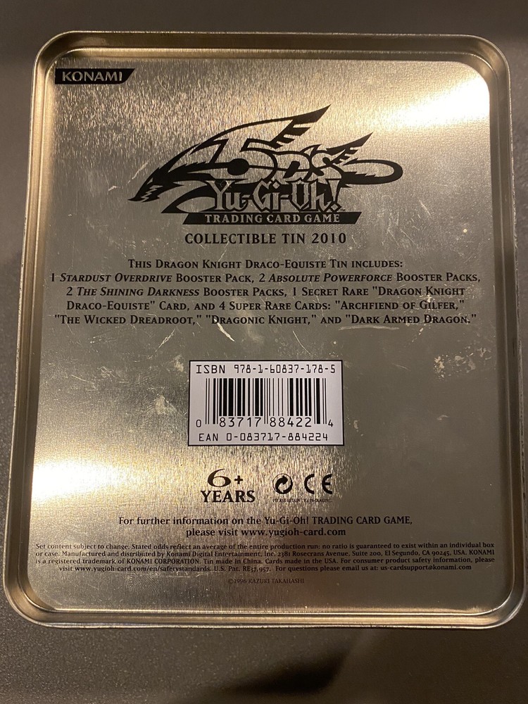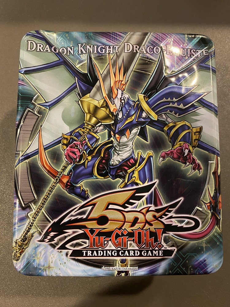 YuGiOh Collectible Tin 2010 5D's Dragon Knight Draco-equiste Tin Only (NO CARDS). Has a few dents and scratches...