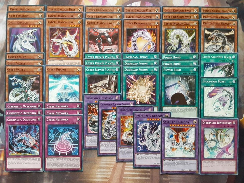 Hello!!! I am a Male Yugioh & Magic Collector & New Ebay Seller!!! I aim for 100% Customer Satisfaction so please!!! Message me about an item if you are not completely Satisfied with it. Below is the featured item if you have any questions please Message me!!! Happy Bidding!!! Hello, Item for sale is: As a Bonus for buying my auction you will Recieve a Free Holo Card from my vast collection. It can be Super Rare, Ultra Rare, or Secret Rare or even GHOST Rare!!! Please Allow me the Set Handling time before your item will be shipped! It may take the full handling time set Thank You!!! This 40 Card Cyber Dragon Deck (with 5 card Extra Deck) is fully built and ready to play! All cards are in NM Near Mint condition! Monsters - 22 3x Cyber Dragon 3x Cyber Dragon Drei 3x Cyber Dragon Core 3x Cyber Dragon Vier 3x Cyber Dragon Zwei 3x Proto-Cyber Dragon 3x Cyber Valley 1x Cyber Pharos Spells - 11 3x Cyber Repair Plant 3x Overload Fusion 3x Power Bond 1x Evolution Burst 1x Super Strident Blaze Traps - 7 3x Cyber Network 3x Cybernetic Overflow 1x Cybernetic Revolution Extra Deck- 5 1x Cyber End Dragon 1x Cyber Twin Dragon 1x Chimeratech Fortress Dragon 1x Chimeratech Rampage Dragon 1x Chimeratech Overdragon