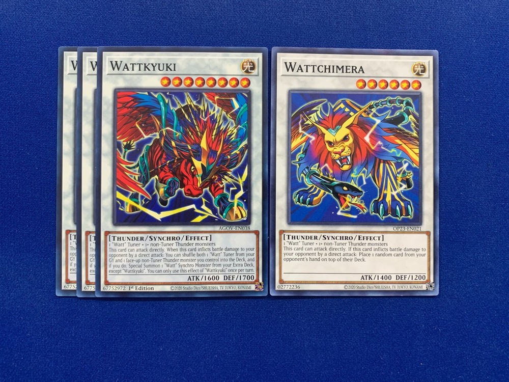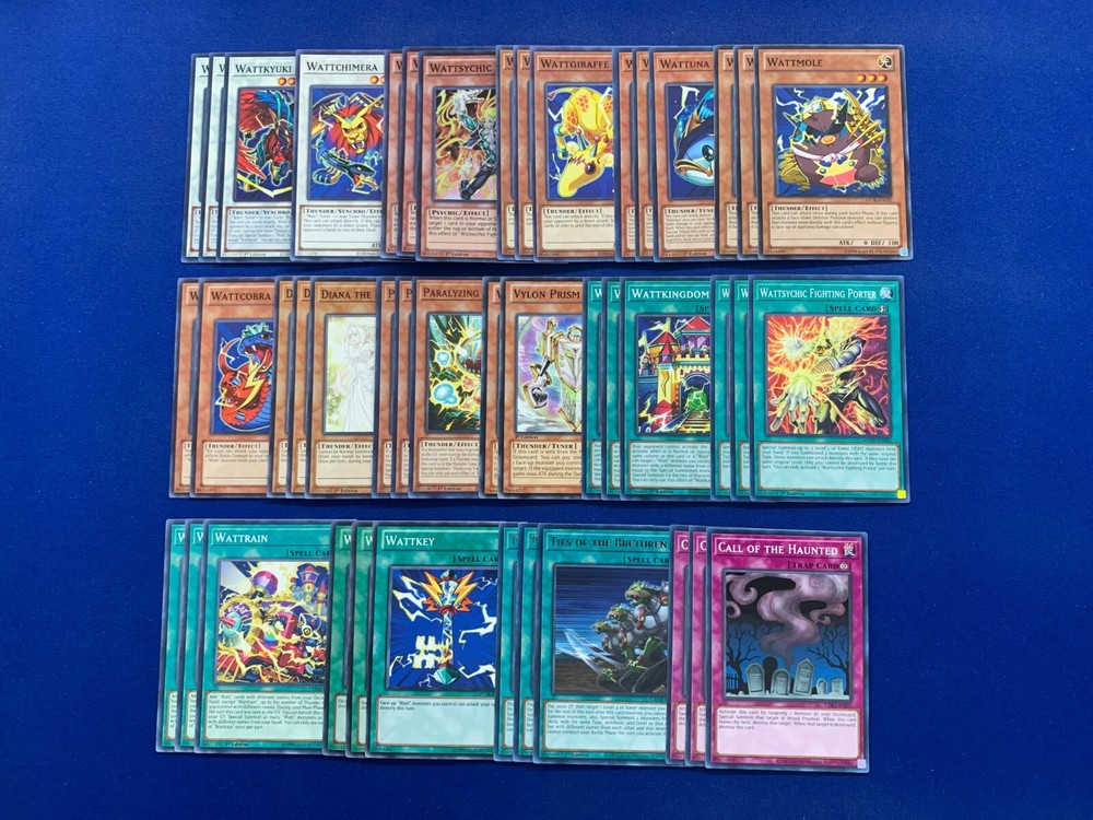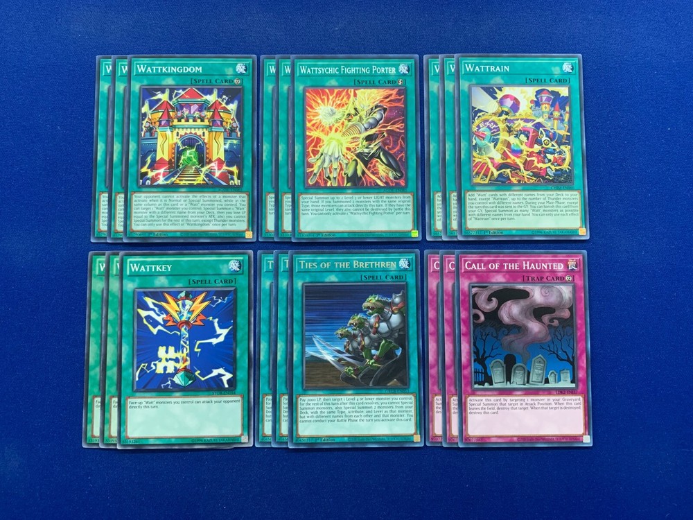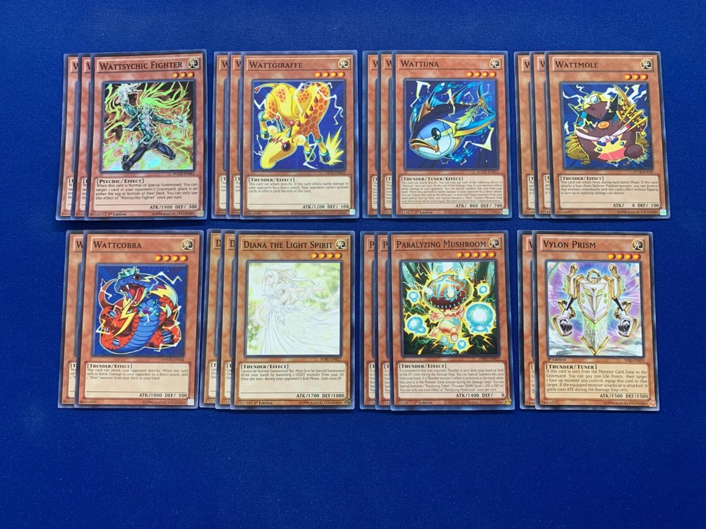 This deck was designed and tested to be ready to play! All cards are in near mint condition (Small chance of lightly played when older cards are involved). By purchasing this item you will receive the following cards: Extra Deck (x4): Wattkyuki (x3) - Common Wattchimera (x1) - Common Monster (x22): Wattsychic Fighter (x3) - Super Rare Wattgirafee (x3) - Common Wattuna (x3) - Common Wattmole (x3) - Common Wattcobra (x2) - Common Paralyzing Mushroom (x3) - Common Diana the Light Spirit (x3) - Common Vylon Prism (x2) - Common Spell (x15): Wattkingdom (x3) - Common Wattrain (x3) - Common Wattkey (x3) - Common Wattsychic Fighting Porter (x3) - Common Ties of the Brethren (x3) - Common Trap (x3): Call of the Haunted (x3) - Common Shipping and Handling: Both Domestic and International Shipping are offered. All deck items are shipped via First Class Parcel Service (3-5 Days) and comes with tracking. Priority Mail Service (1-3 days) is also offered for Domestic buyers. Price is calculated based on the buyer's location. Payment: Payments are due within 3 days of ordering. Otherwise an Unpaid Item Case will be opened. If you have any questions or concerns, send a message and we'll answer as soon as we can! Please remember to leave feedbeck if you can, especially if you enjoy your purchase! Thank you for your patronage and support!