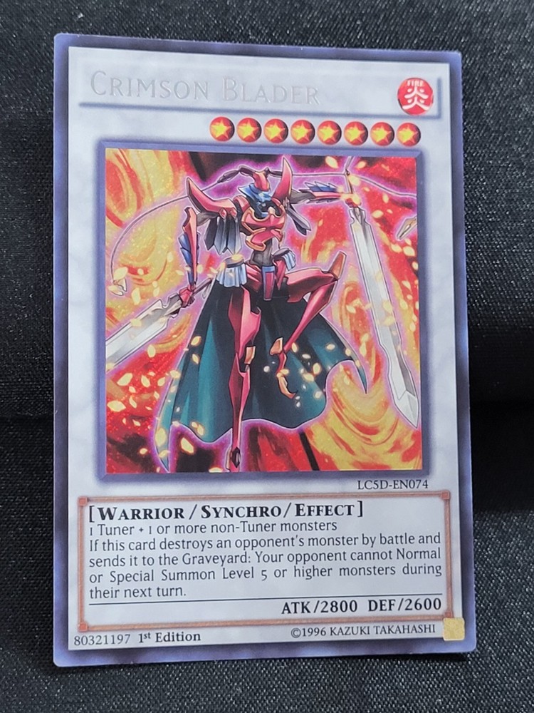 You are bidding on 1 YuGiOh Crimson Blader - LC5D-EN074 - Secret Rare - 1st Edition LP Please see all pictures. Thank you. If you need more pictures or have any other questions, please feel free to ask. International bidders please look at global shipping details before bidding. Thank you and happy bidding.