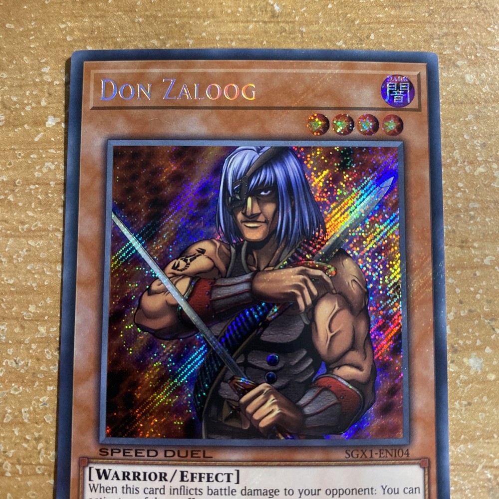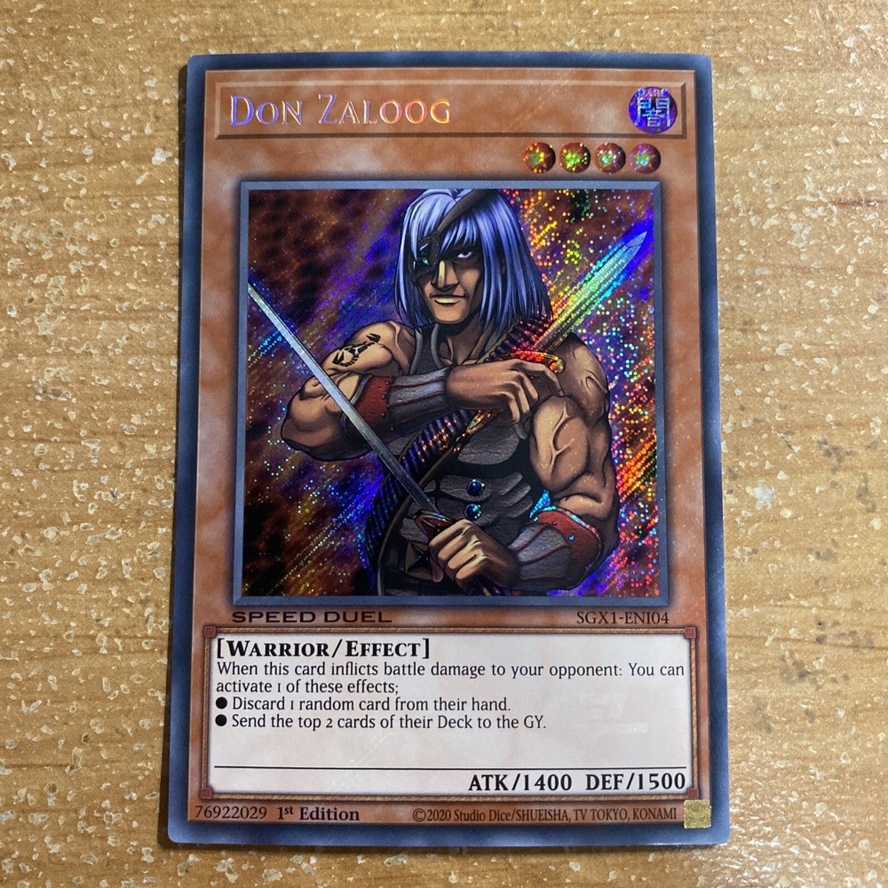 š„ Yu-Gi-Oh! DON ZALOOG SECRET RARE SGX1-ENI04 1ST EDITION SPEED DUEL GX NM This Yu-Gi-Oh! card is a must-have for any collector. Featuring the powerful creature type of Effect, this Don Zaloog card is from the Speed Duel GX: Duel Academy Box set and is a rare 1st edition. The beautiful artwork, illustrated by Match, makes this card a true gem for fans of the Yu-Gi-Oh! franchise. The card is in near mint or better condition. The features of this card include being a 1st edition and having a regular finish. Add this Secret Rare card to your collection today! This item will be sent in a plastic sleeve/deck protector sleeve and in a toploader for maximum protection. Shipping is FREE! Payment is due immediately. The faster the payment the faster i'll ship out. Questions or comments?? Feel free to contact me. I'll get back to you within 24 hours. Check out my eBay store for more Yugioh items!