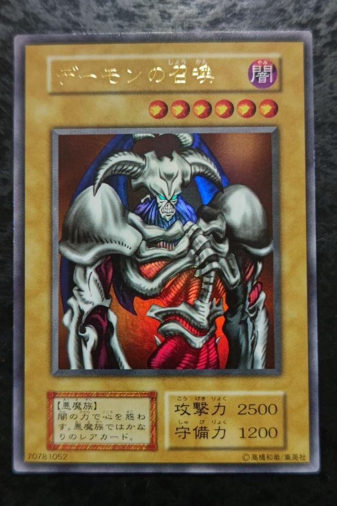This Yu-Gi-Oh! Demon Summon Ultra Rare card is a fantastic grab for collectors—authentic Japanese version in Near Mint condition with only minor wear. The artwork pops beautifully, and the slight imperfections are barely noticeable. A nostalgic and valuable piece for any Yu-Gi-Oh! fan!