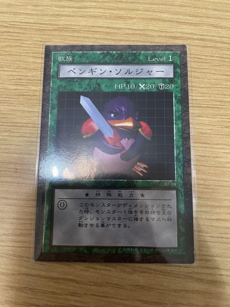 This Penguin Soldier Dungeon Dice Monster card is a cool collectible for Yu-Gi-Oh! fans! The sleeve and waterproof bag keep it safe, though it has some wear—perfect for nostalgic gamers who love classic rarities. Adds a fun twist to any DDM collection!