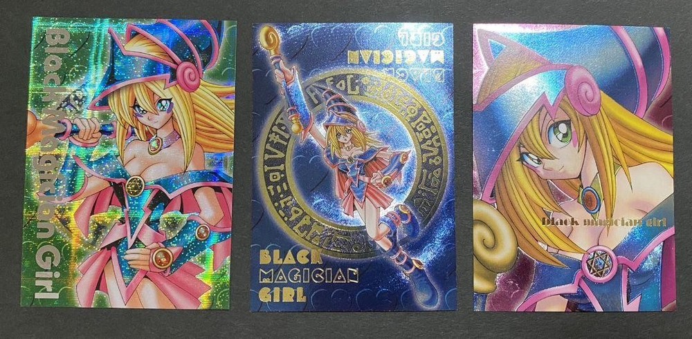 These Yu-Gi-Oh! promo cards are a must-have for collectors—especially Black Magician Girl fans! The set includes a stunning green secret variant plus blue and pink relief editions with gold detailing. Despite being around 20 years old, they're in great shape, with only minor wear. Perfect for displays or completing your rare card collection! Highly recommended for any Yu-Gi-Oh! enthusiast.