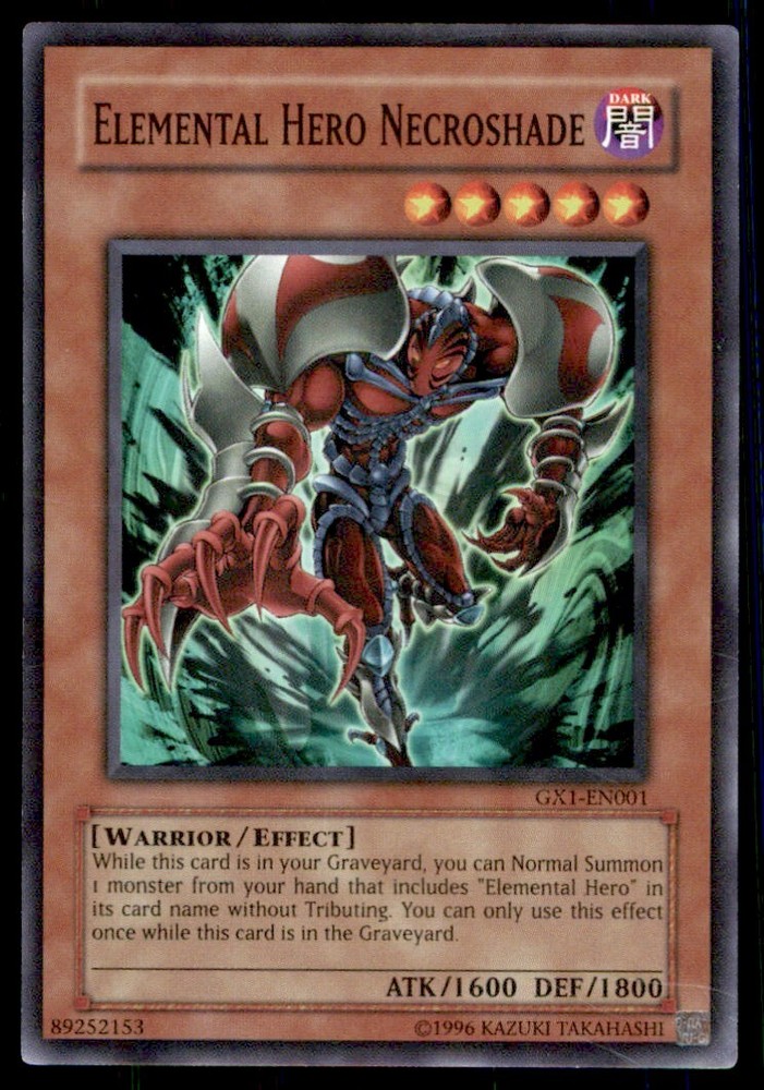 About Me Other Listings Feedback Add to Favorites Contact Me Bluenose Yu-Gi-Oh! Elemental Hero Necroshade #GX1-EN001 Light Play No stock photo / These are real scans or pictures Details Description: Elemental Hero Necroshade Category: Yugioh Year: 1996 Product: Yu-Gi-Oh! Card Number: GX1-EN001 Special: Light Play Dimensions: 3¼" x 2¼" SKU: YU B0003 R04 C (30) Payment Payment for buy it now is required immediately and for auctions it must be paid within 72 hours. Shipping Shipments usually make their way out in 3 business days. All orders to USA under 800$ USD typically are NOT subject to import or duty! We also offer free shipping on all our cards for north america. Returns and Claims Please view listing photo and description prior to purchase of card to make sure the card and condition is right for you! About Us Please keep in mind the following conditions .-------------------------------------------Near Mint: a card that shows very little to no signs of ware or usage such as very little whiting. -------------------------------------------Light Play: A card that shows signs of ware such as but not limited to whiting, slight bend or scratches. -------------------------------------------Heavy Play: A card that shows signs of ware, whiting, bending, creasing, folding or other various issues.-------------------------------------------Damaged: a card in very bad condition can have some or all of the above mentioned condition notes including peeling, stains, writing, etc.-------------------------------------------The photo in ads are the EXACT card you will recieve. Listing By Kronocard trading cards software v2.7.0.1 Update ? March 3rd, 2025